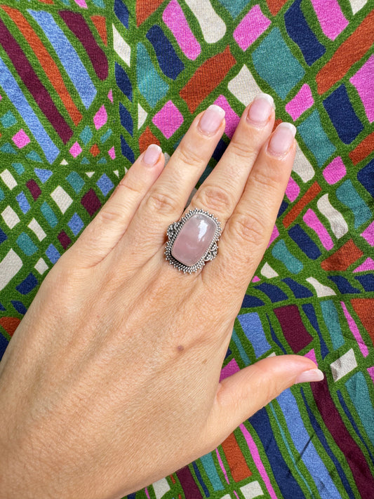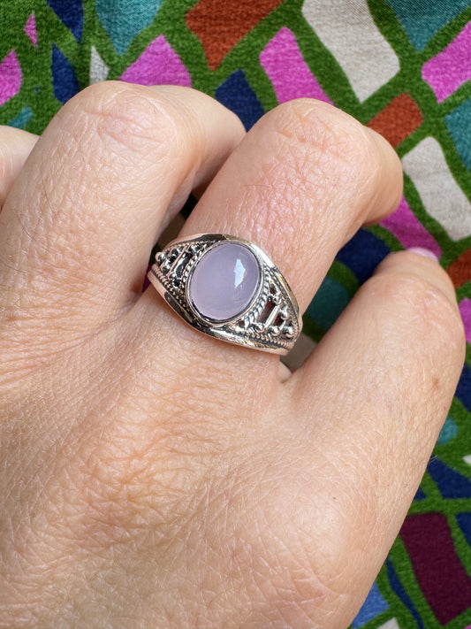 Anello argento 925 Pietra di luna arcobaleno regolabile misura 17 M12