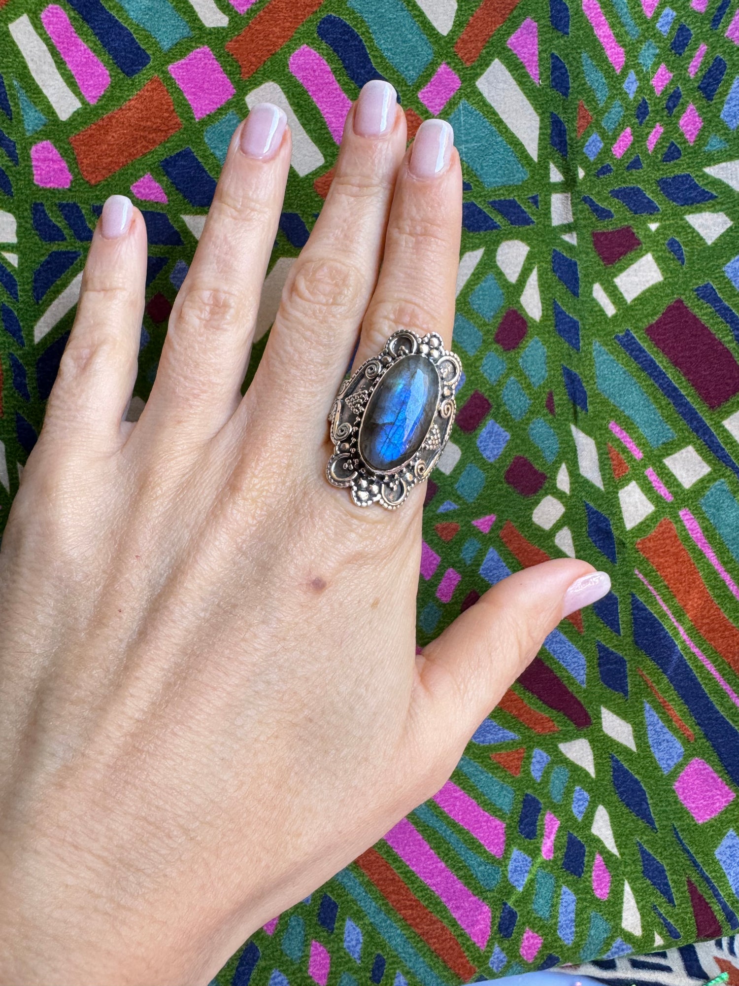 Labradorit, verbunden mit dem Halschakra, hilft dabei, sich insbesondere von der Last, die auf den Schultern lastet, zu befreien und das Selbstvertrauen zurückzugewinnen.