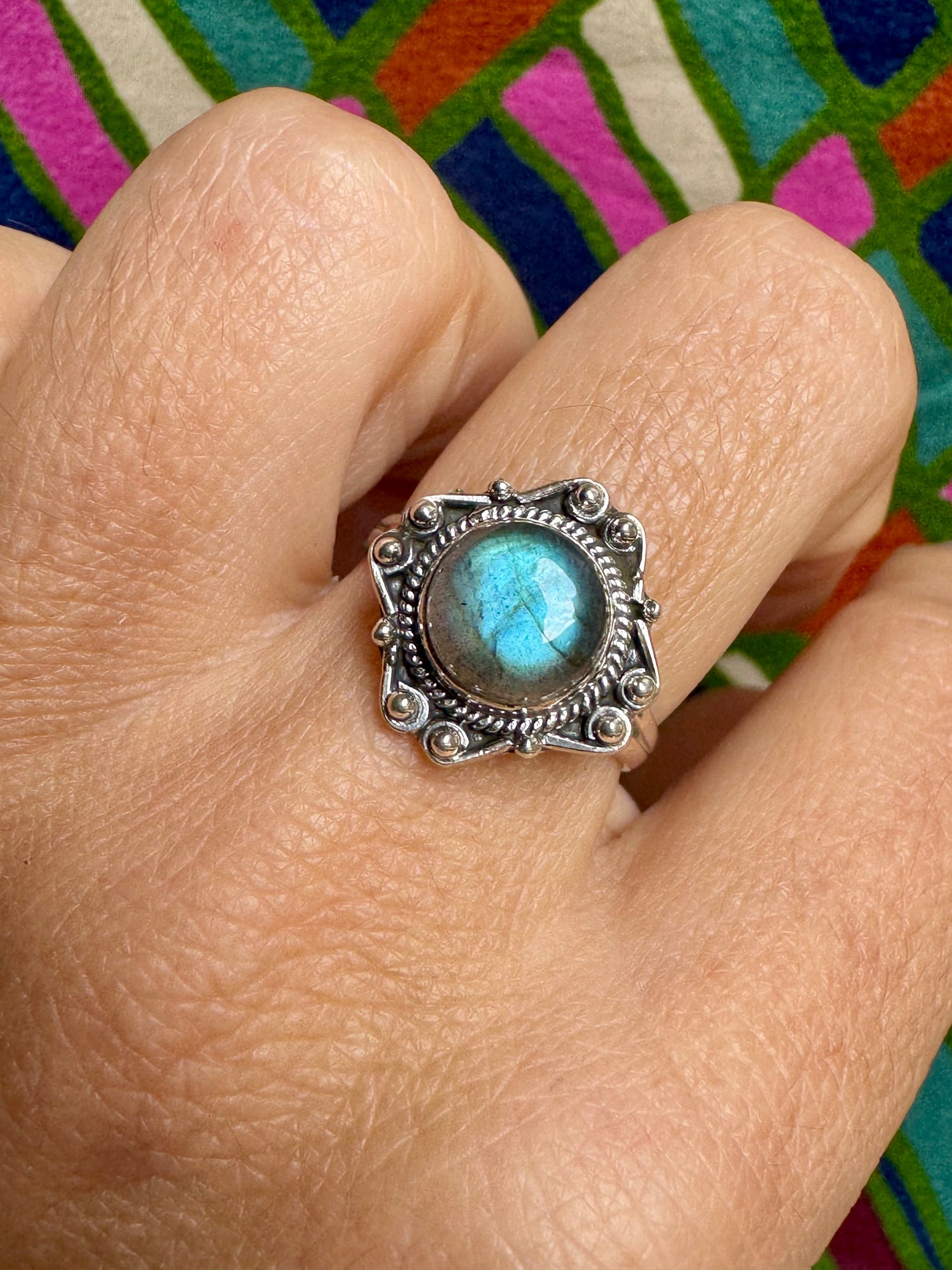 Labradoritring aus 925er Sterlingsilber, Größe 15 - 3LA