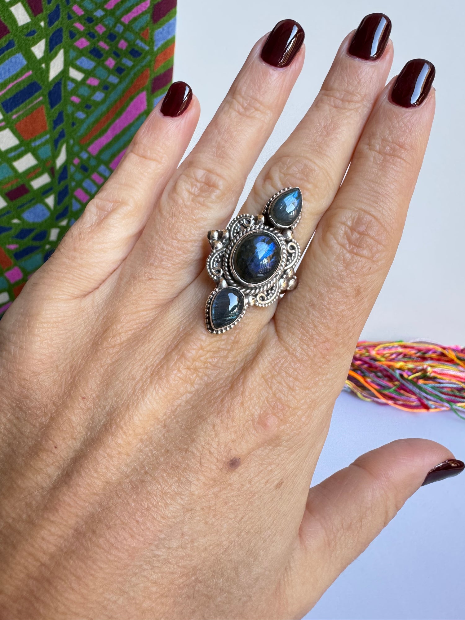 Anello argento 925 labradorite misura 12/13 - 11LAB