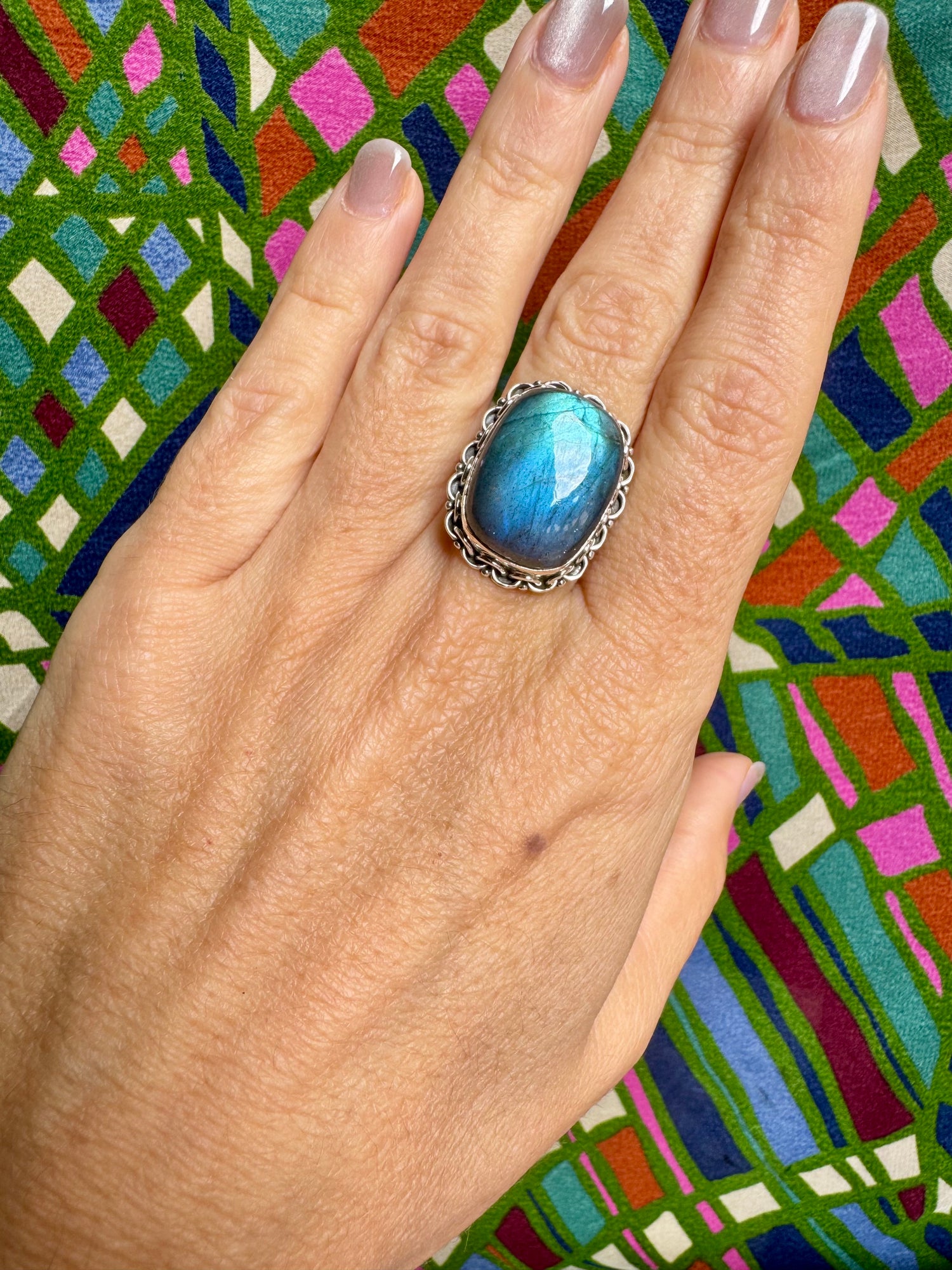 Labradoritring aus 925er Sterlingsilber, Größe 16 - 10LA