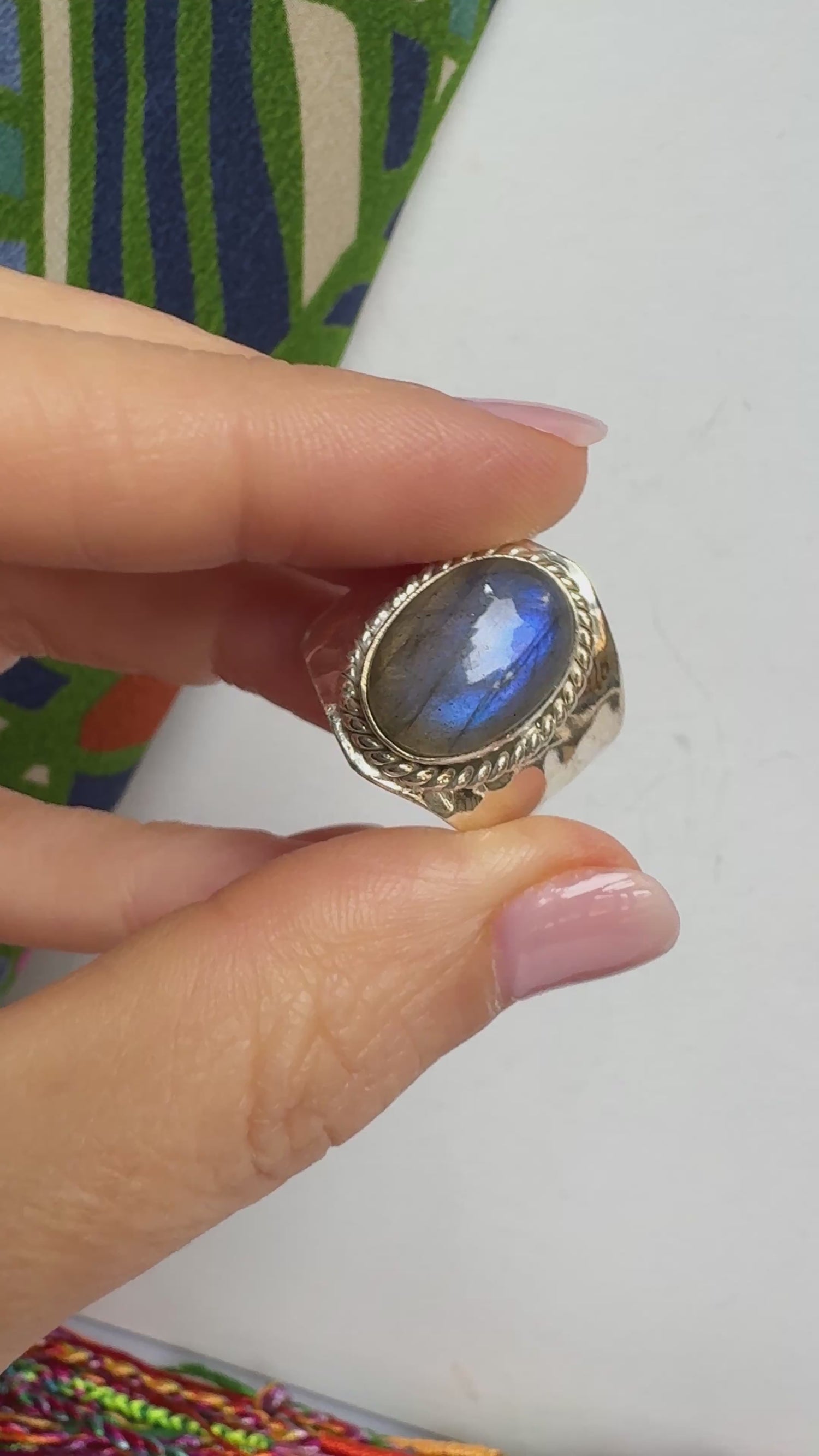 Anello argento 925 labradorite misura 19/20 - 25SZ