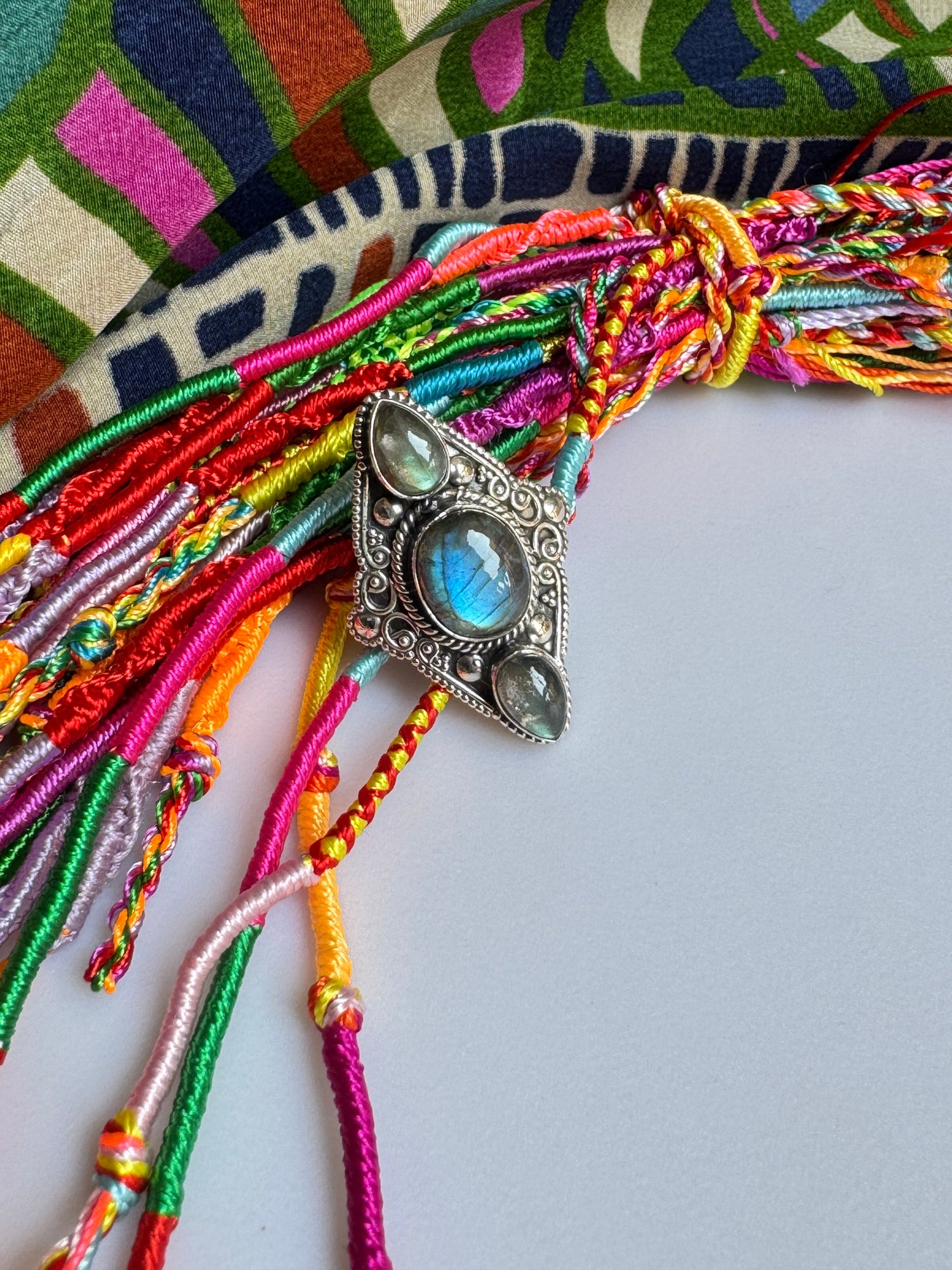 Labradorit, verbunden mit dem Halschakra, hilft, sich insbesondere von Belastungen zu befreien, die auf den eigenen Schultern lasten, und das Selbstvertrauen wiederzugewinnen.