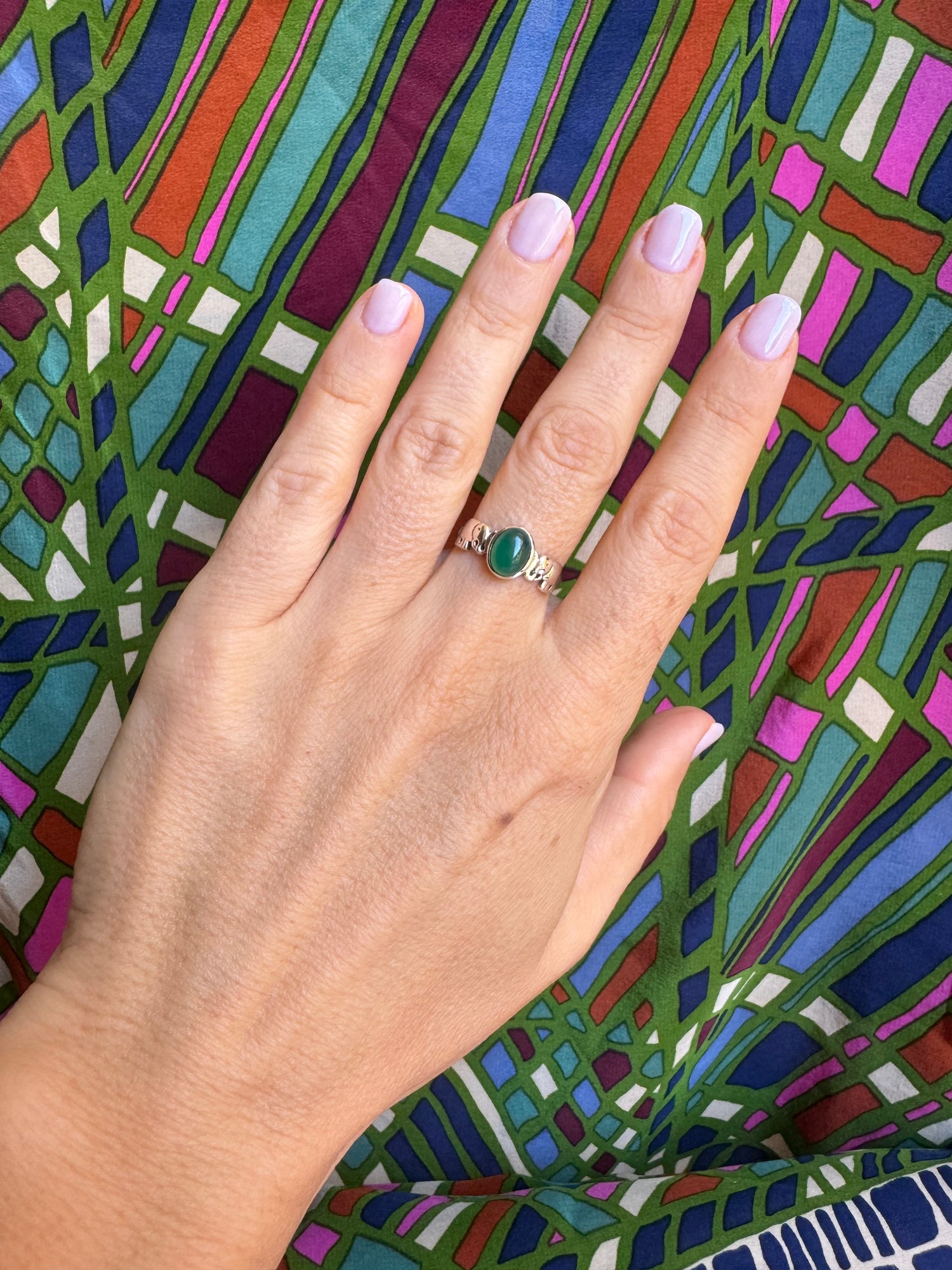 925er Silberring mit grünem Onyx, Größe 13 - G60