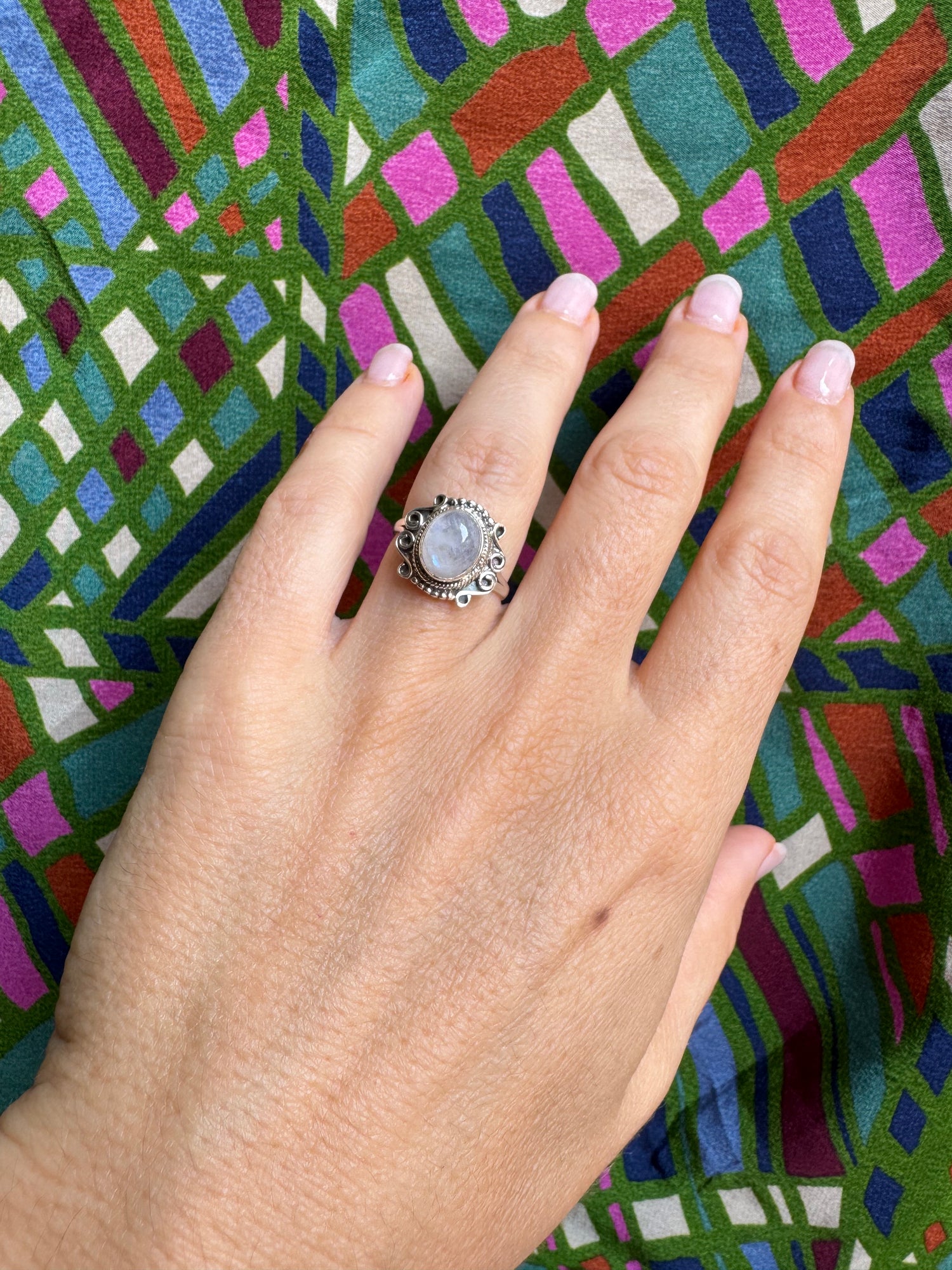 925 Silber Regenbogen Mondstein Ring Größe 14 - G3
