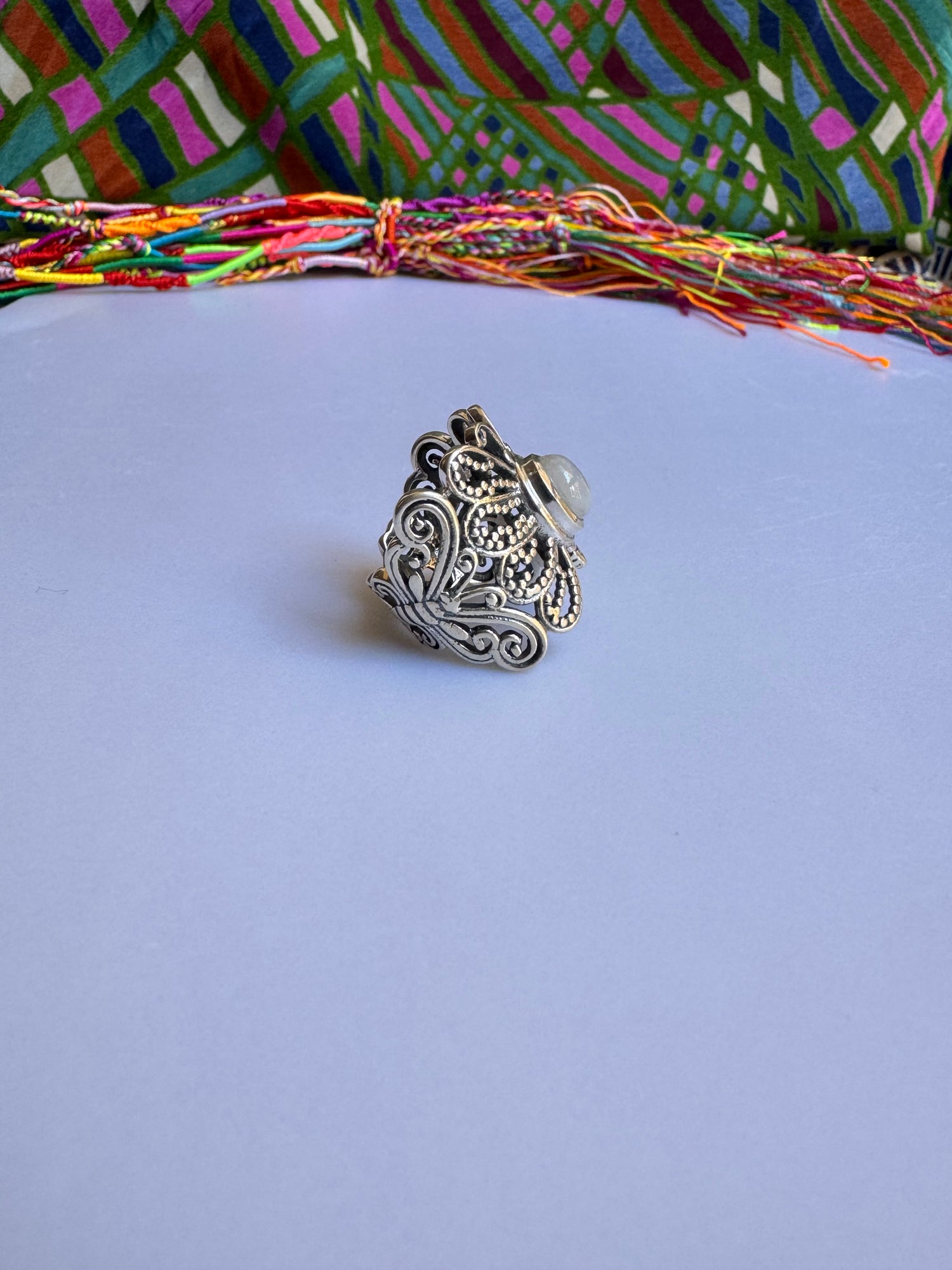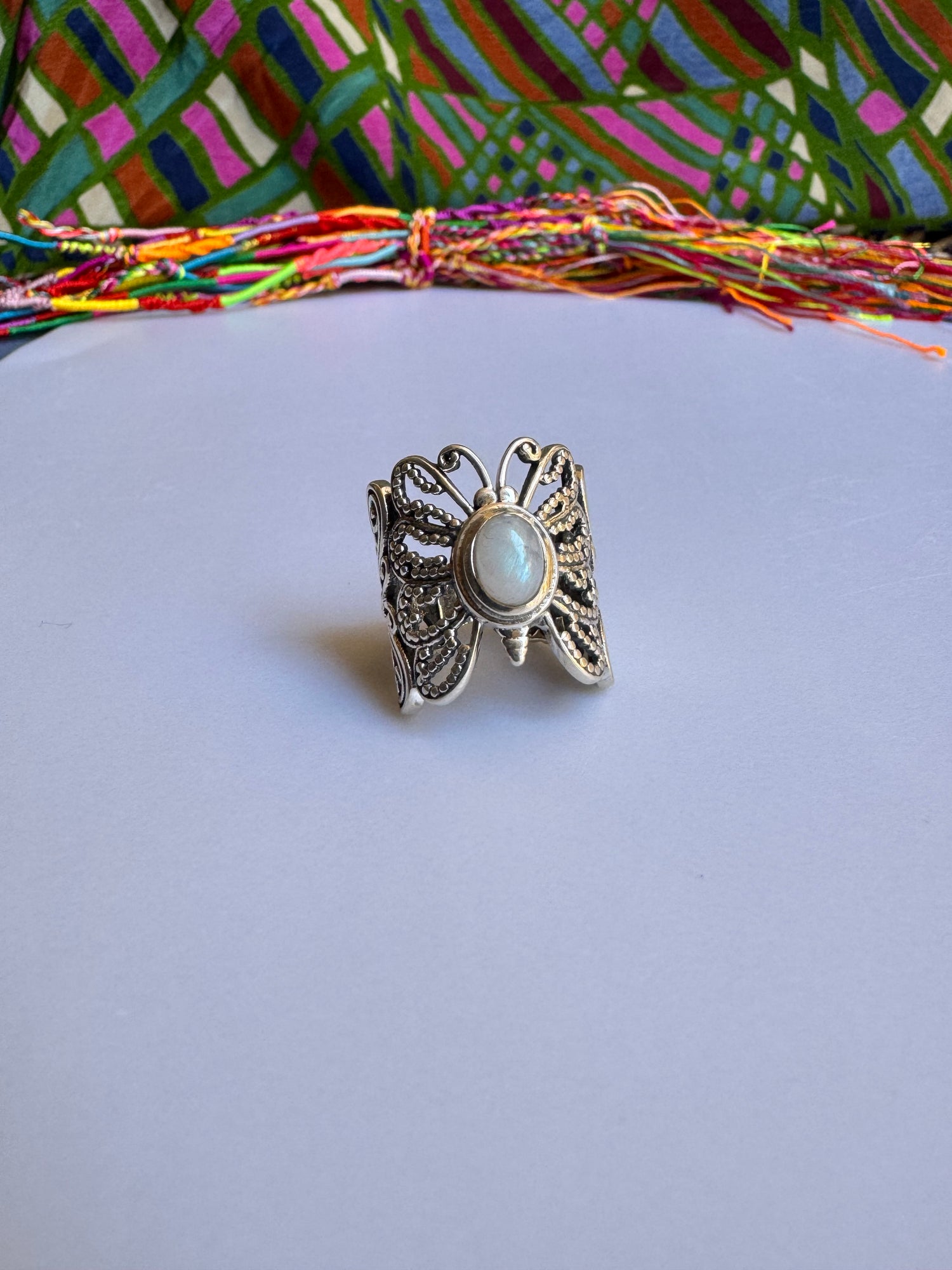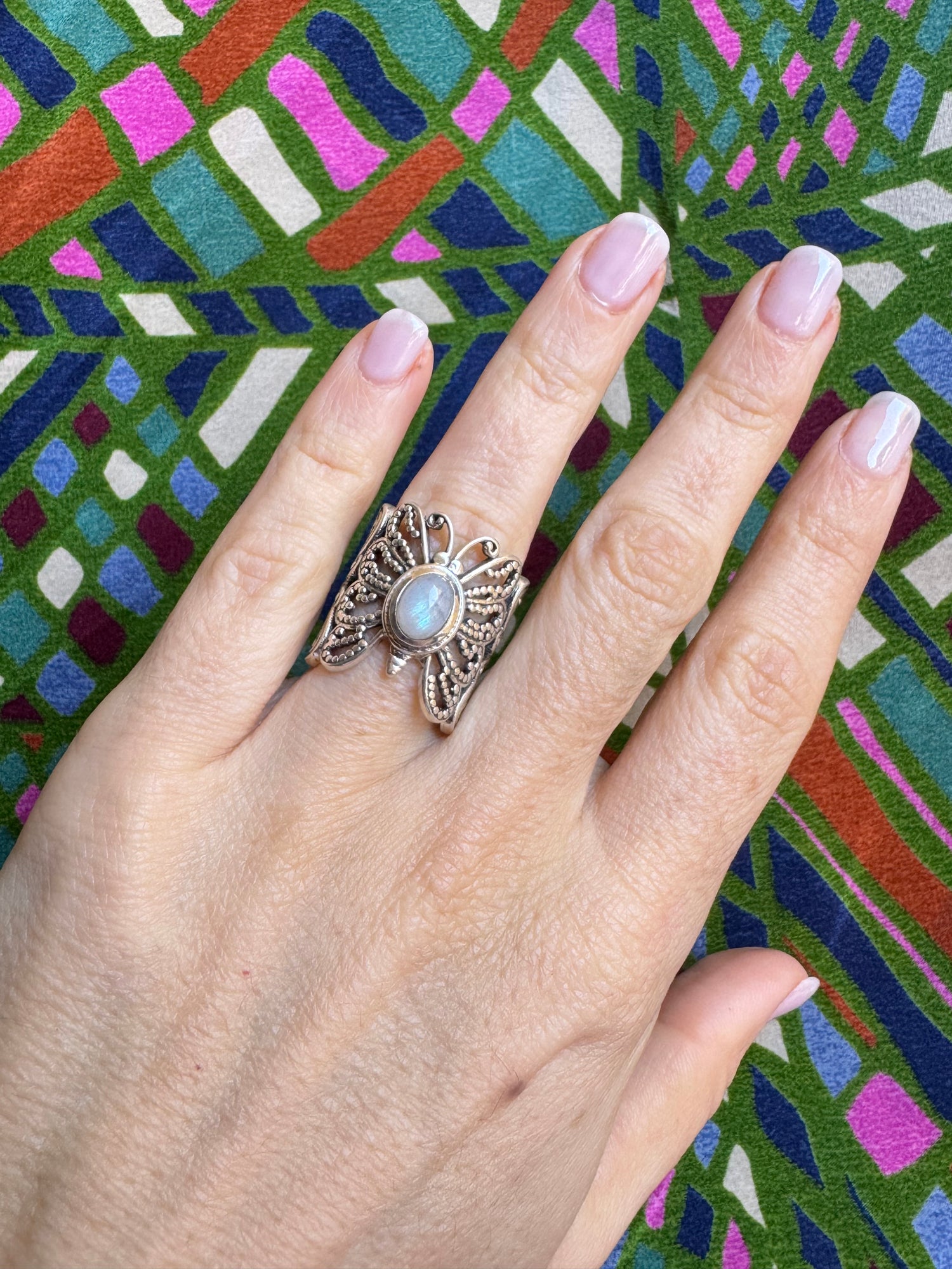 925 Silber Ring Regenbogen Mondstein Größe 14 - F79