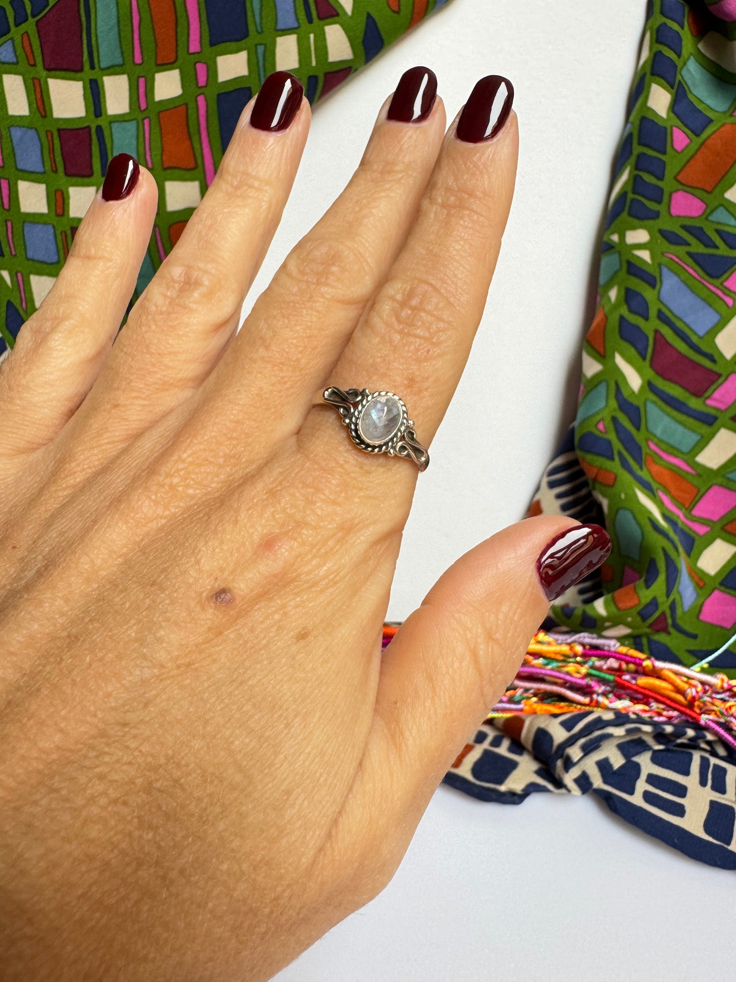 Anello argento 925 Pietra di luna arcobaleno misura 21 - 4AR