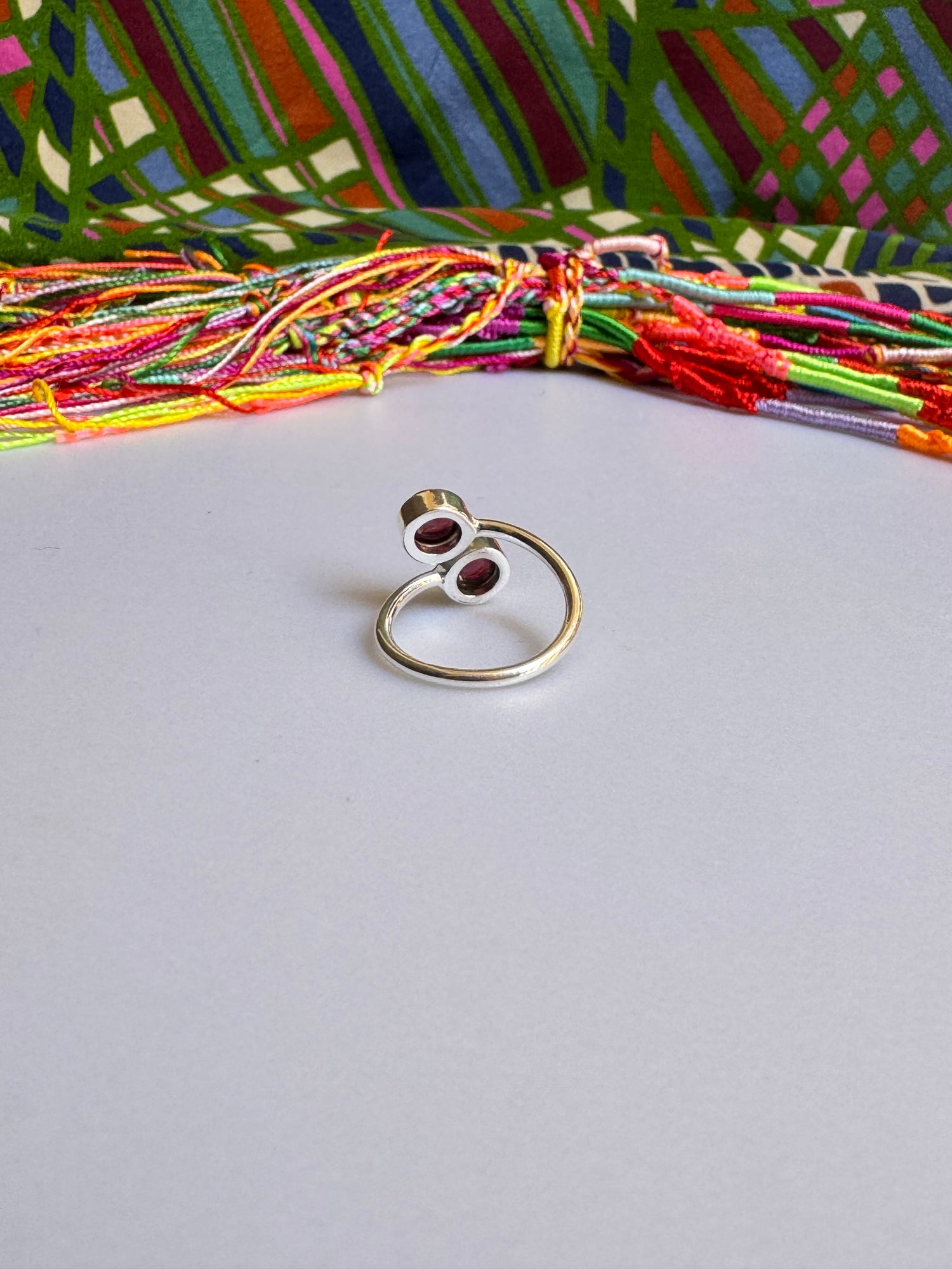 Verstellbarer Granat-Silberring, Größe 10 X48