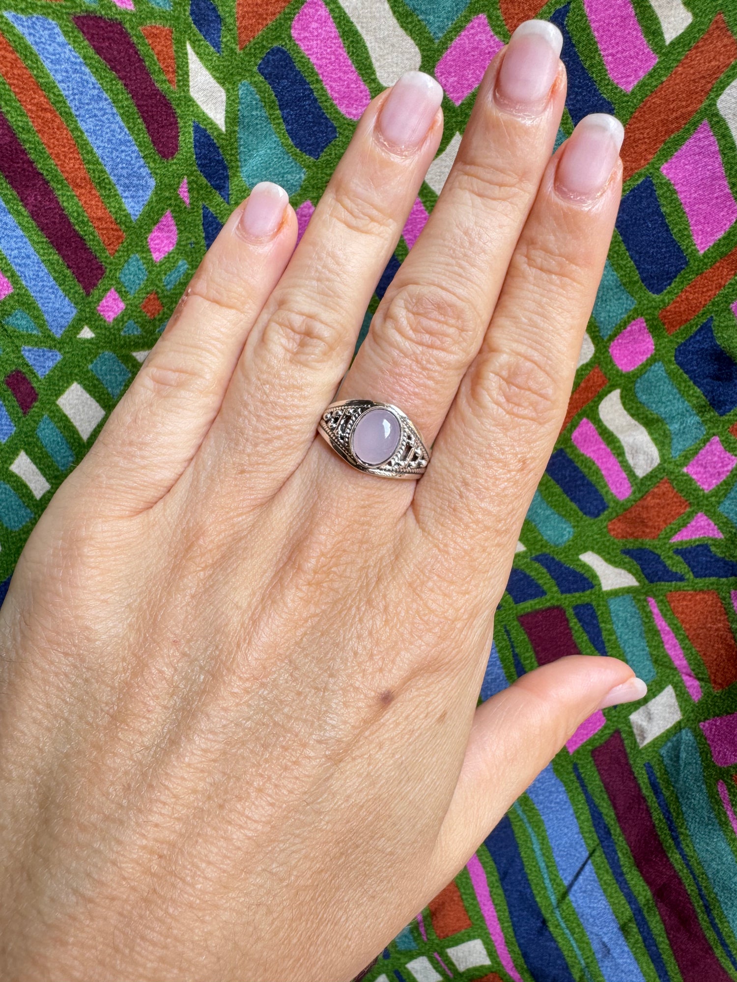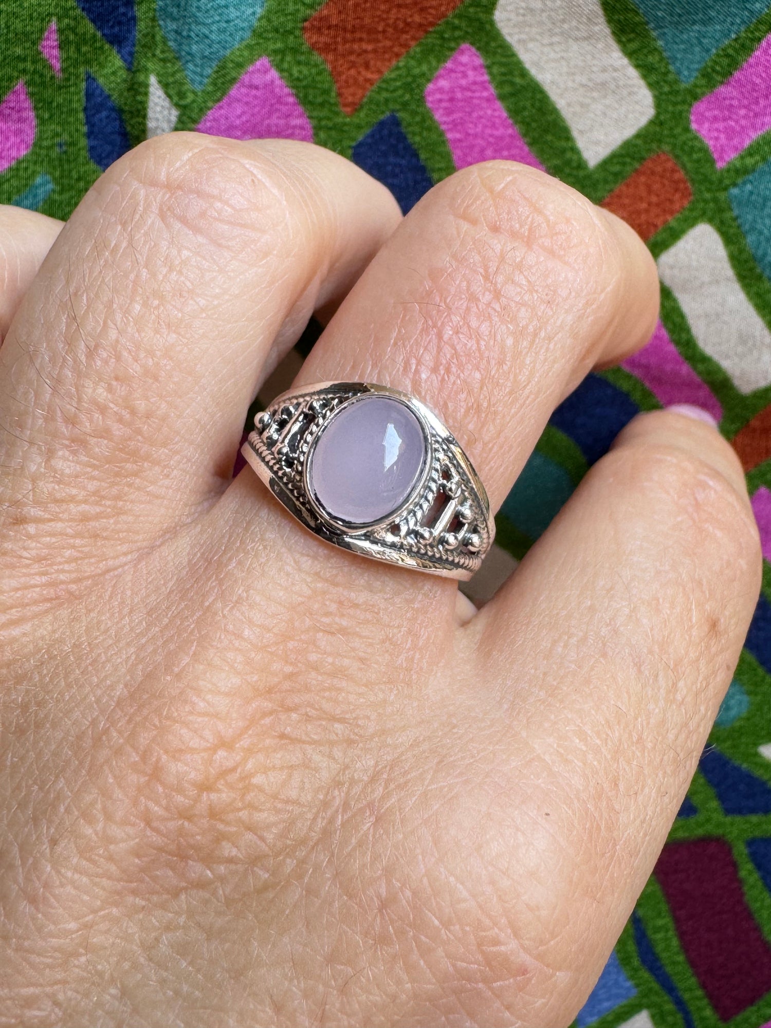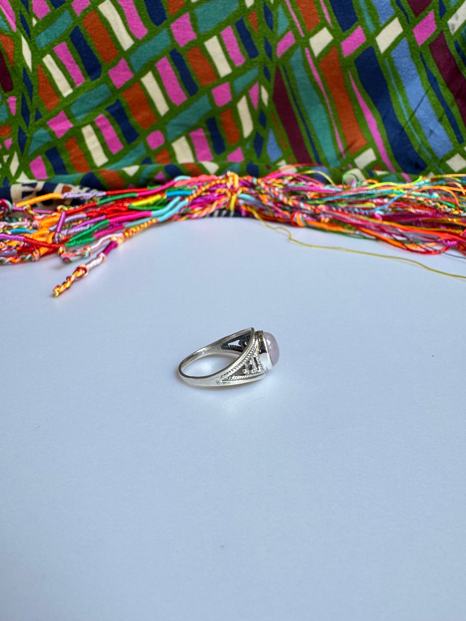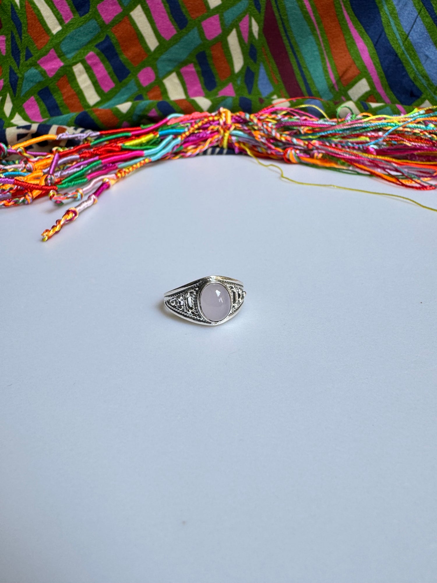 925 Silberring mit Rosenquarz, Größe 16 - X64