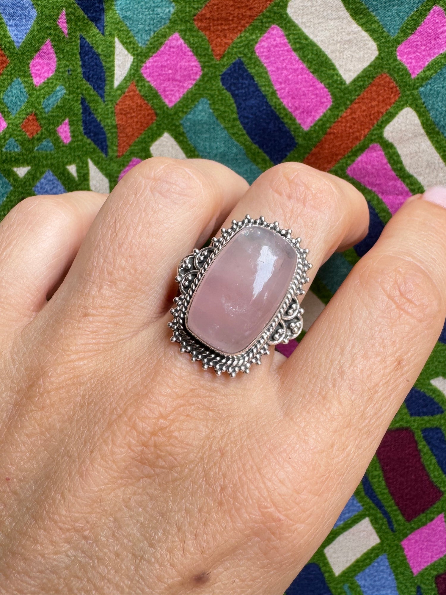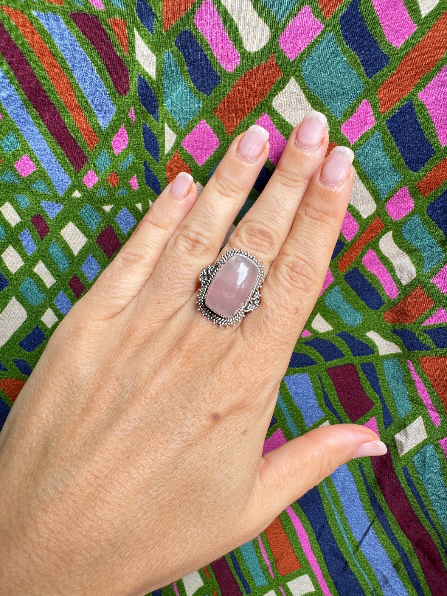 925 Silberring mit Rosenquarz, Größe 14/15 - X67