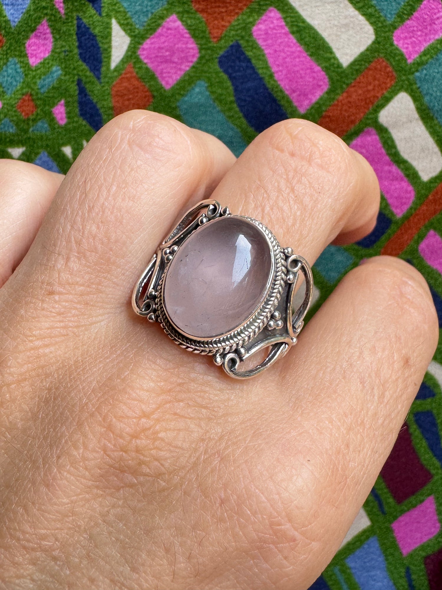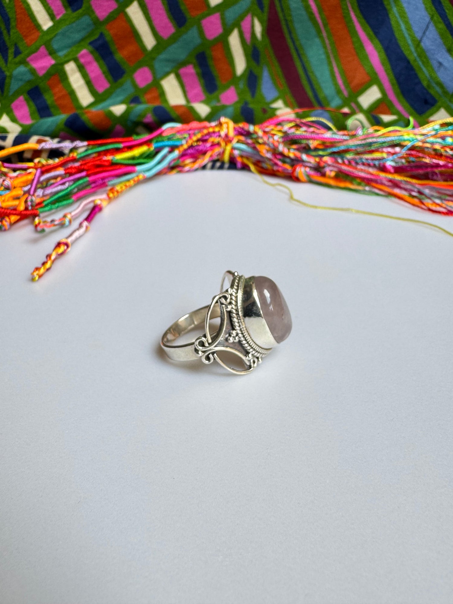 925 Silberring mit Rosenquarz, Größe 17/18 - X68
