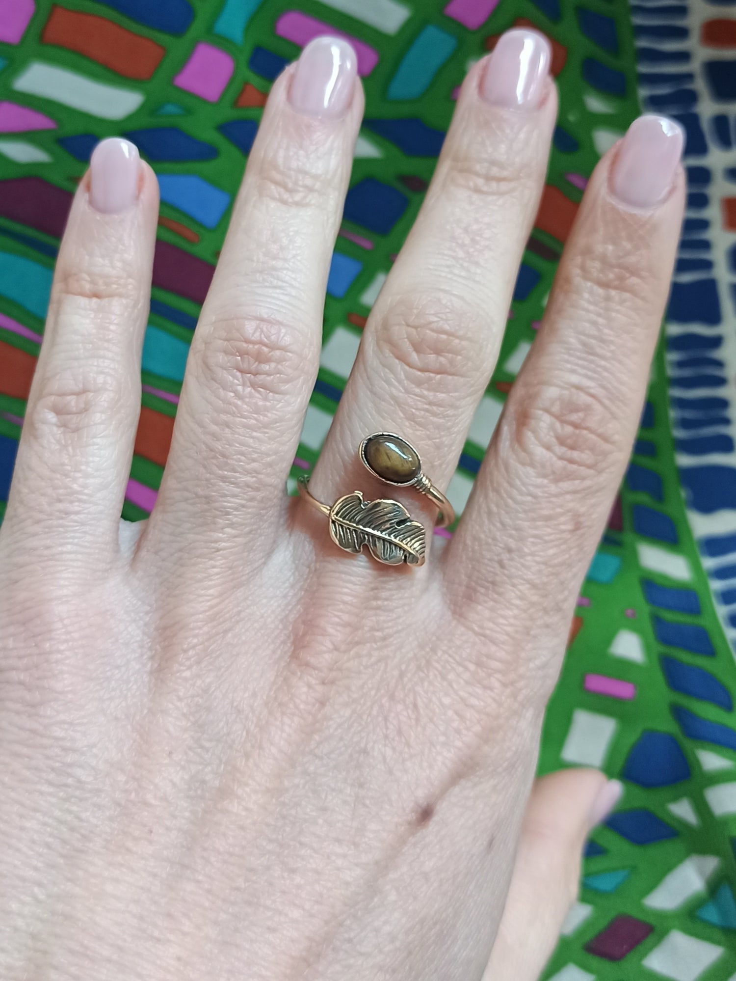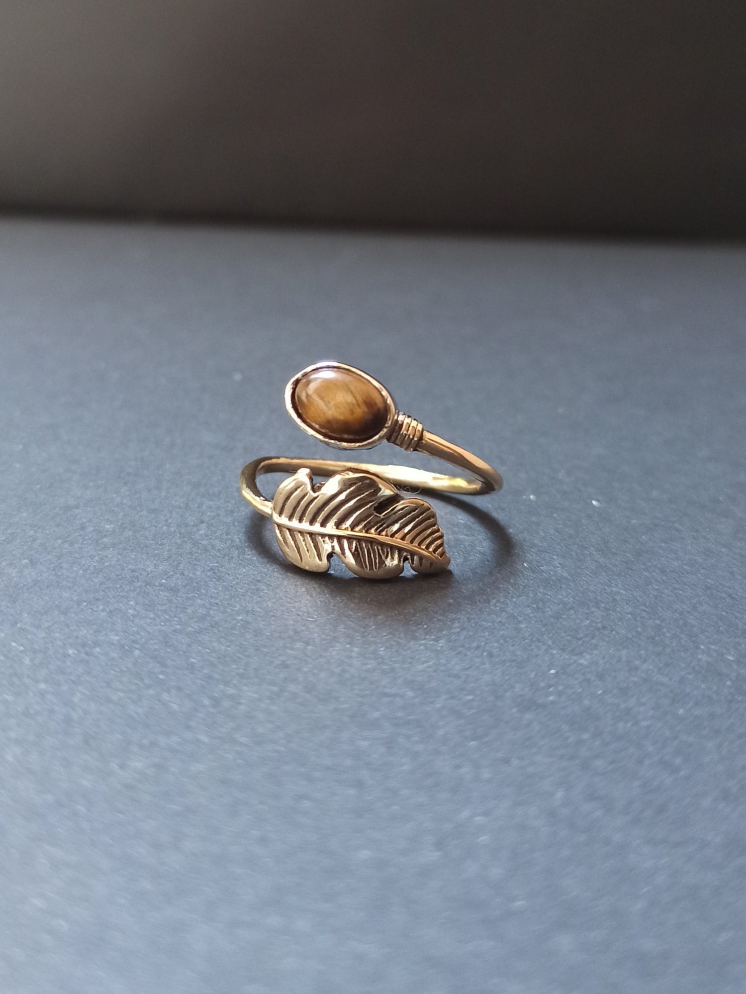 Hypoallergener goldener Messingring mit Tigerauge. Einstellbar.