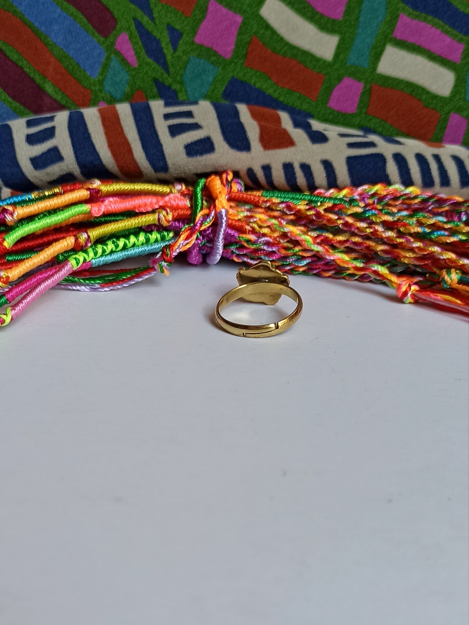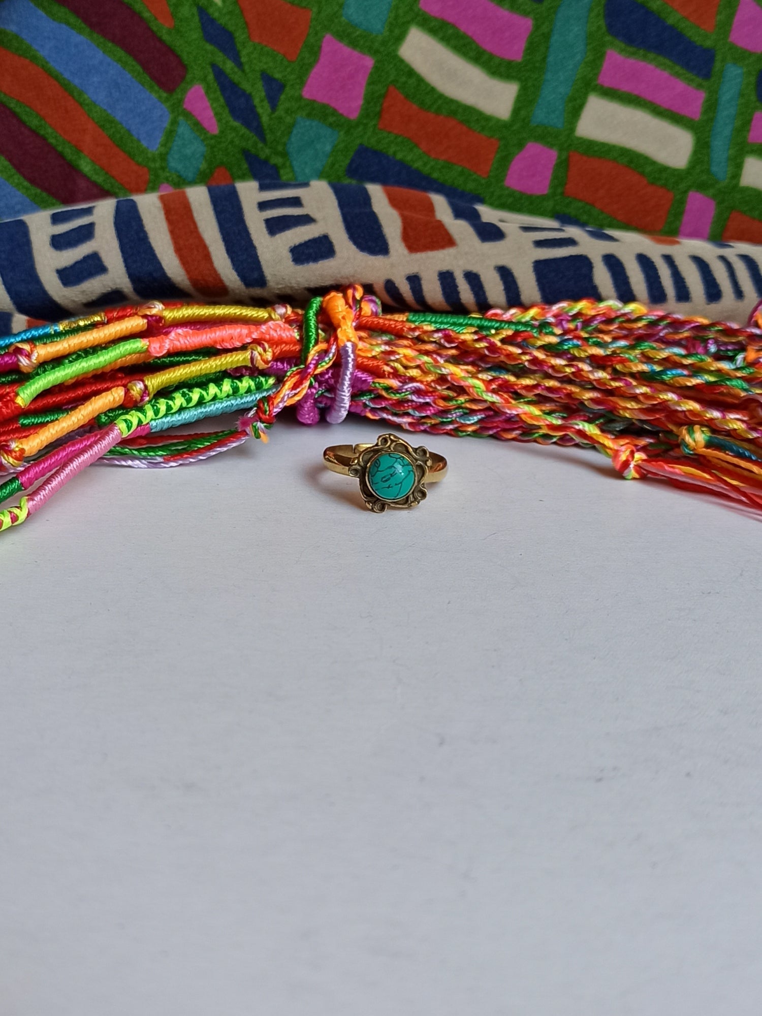 Hypoallergener goldener Messingring mit türkisfarbenem Einsatz. Einstellbar.