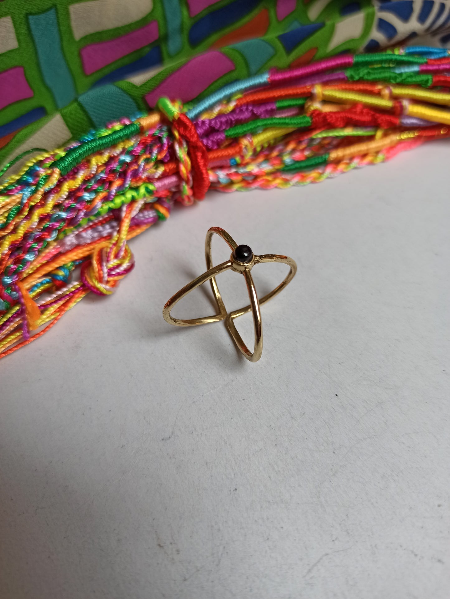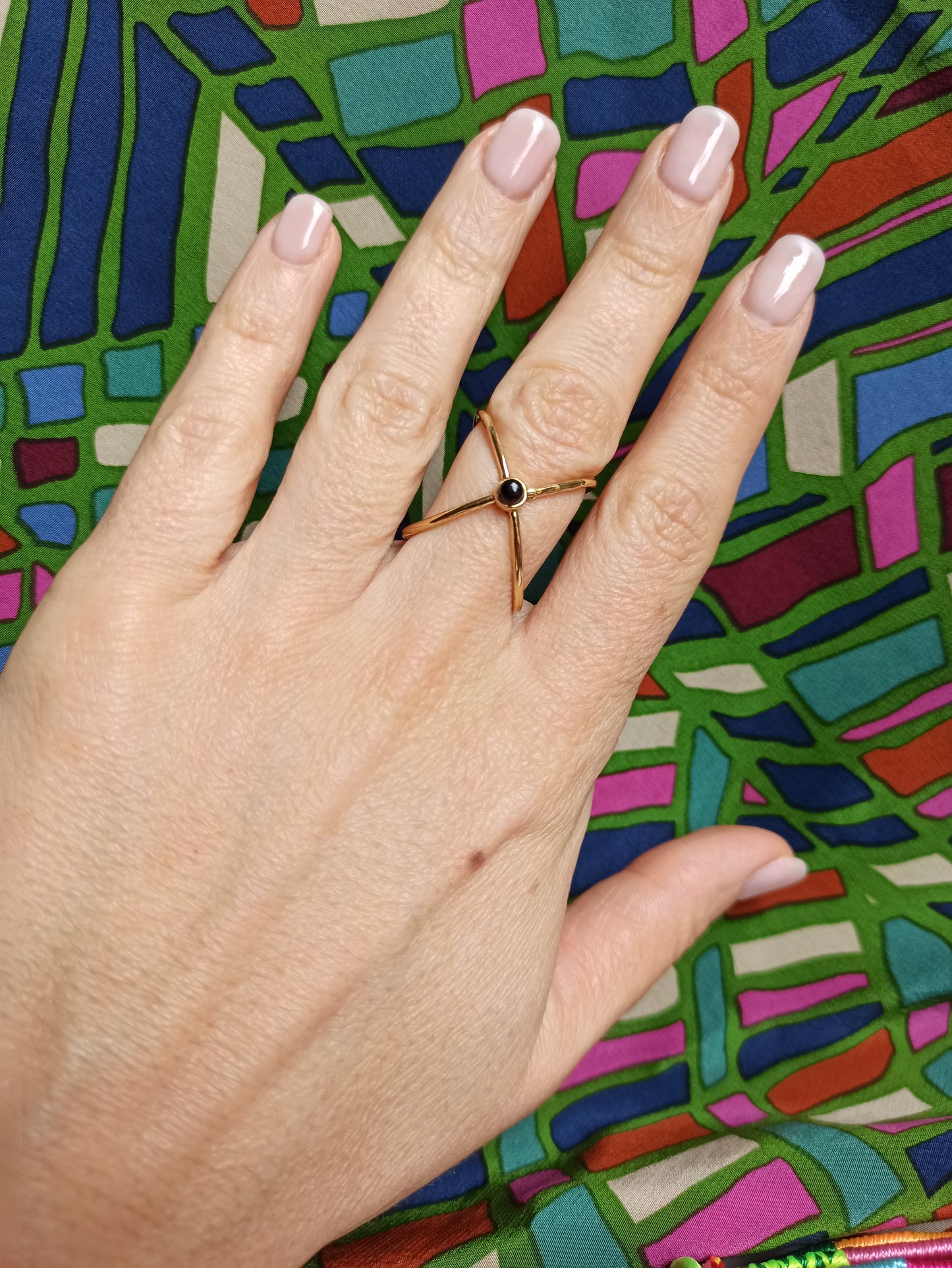 Hypoallergener goldener Messingring mit onyxartigem Harz. Einstellbar.
