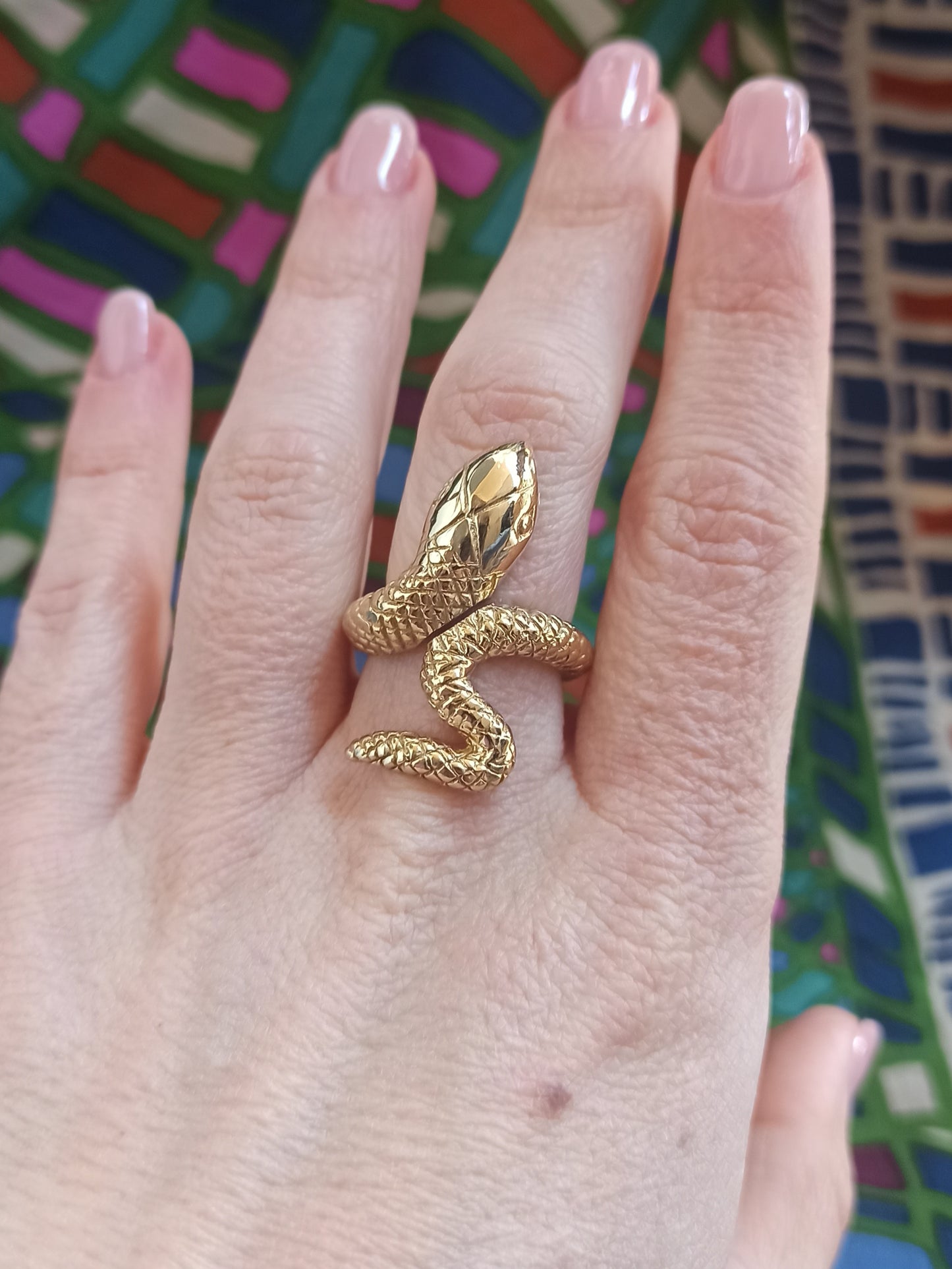 Goldener Schlangen-Boho-Ring mit gekräuseltem Schwanz