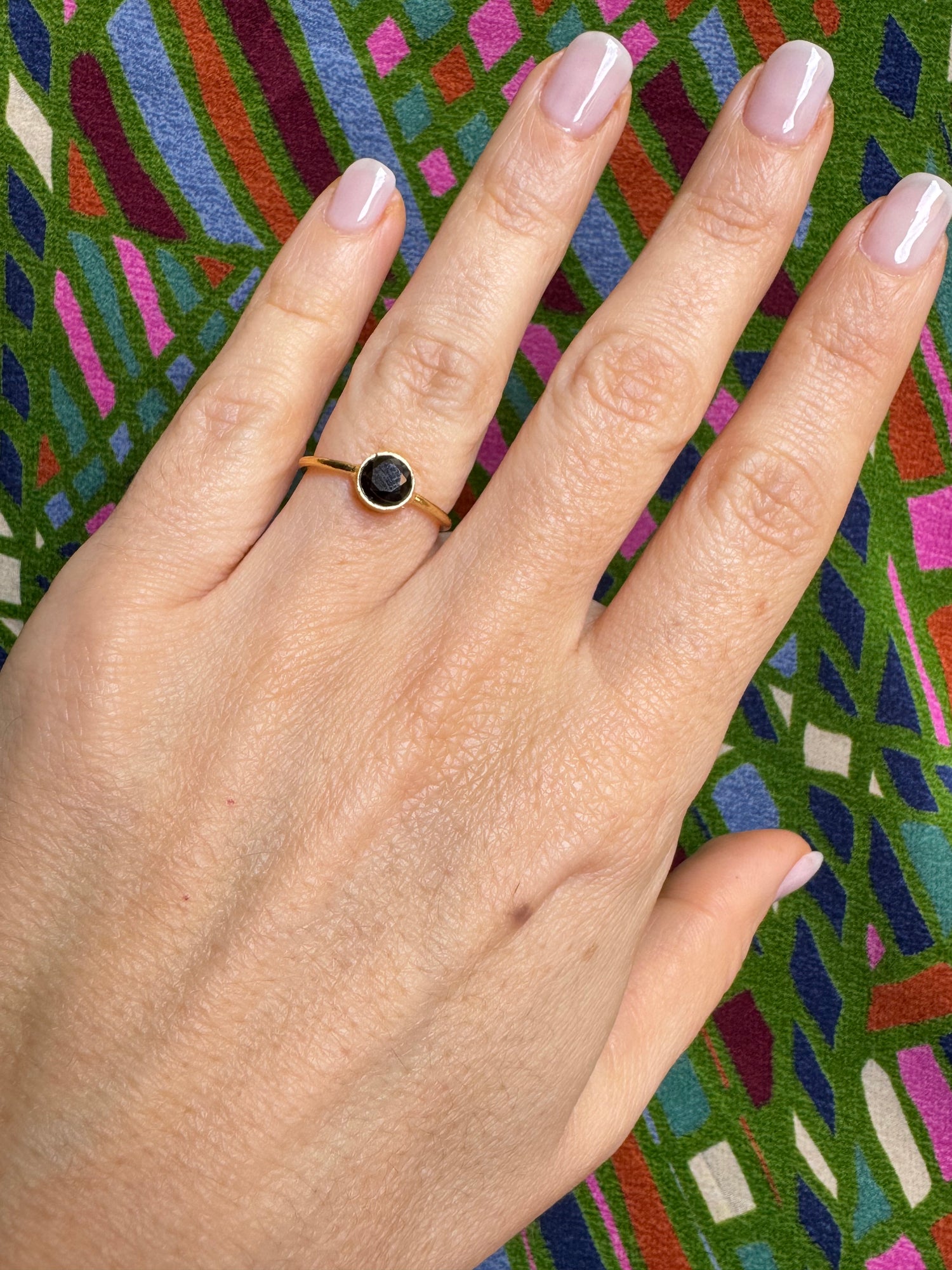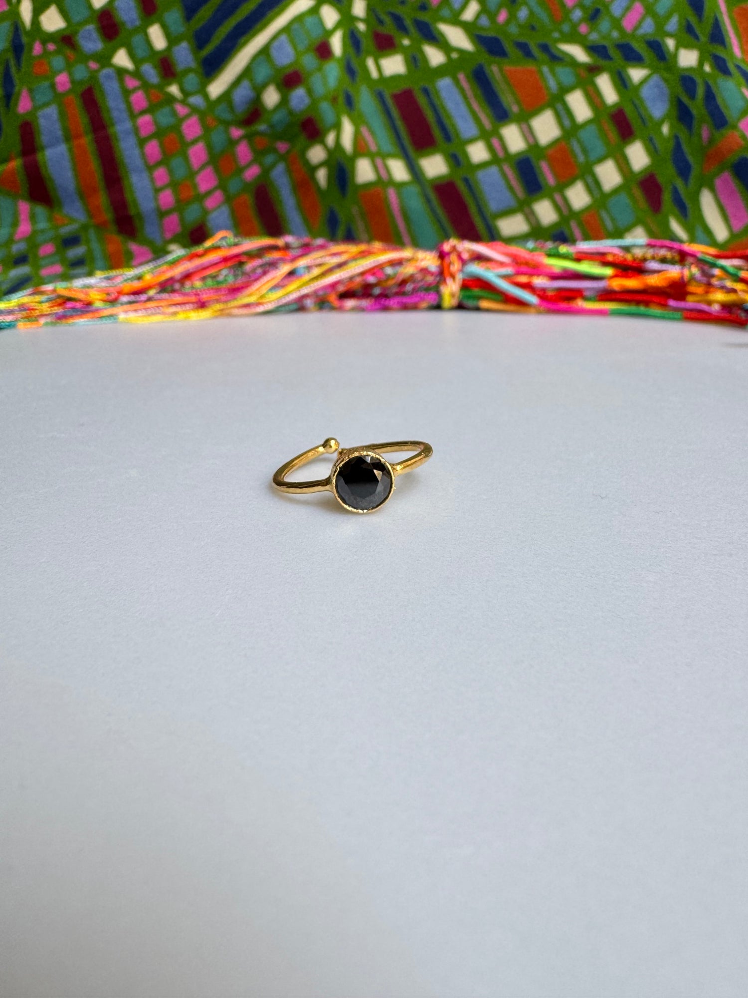 Hypoallergener Messingring mit schwarzem Glas. Nickelfrei. Einstellbar.