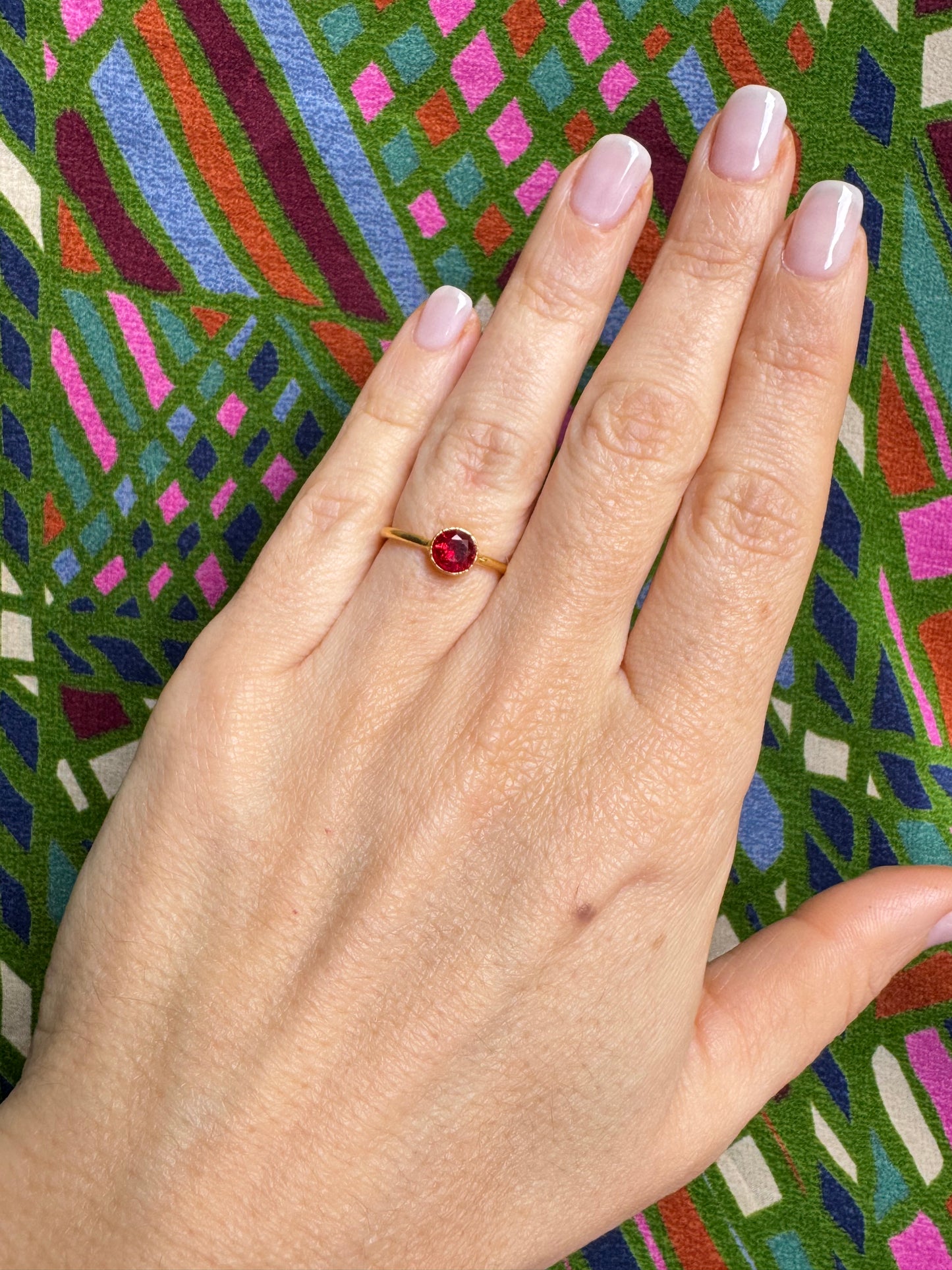 Hypoallergener Messingring mit rotem Glas. Nickelfrei. Einstellbar.
