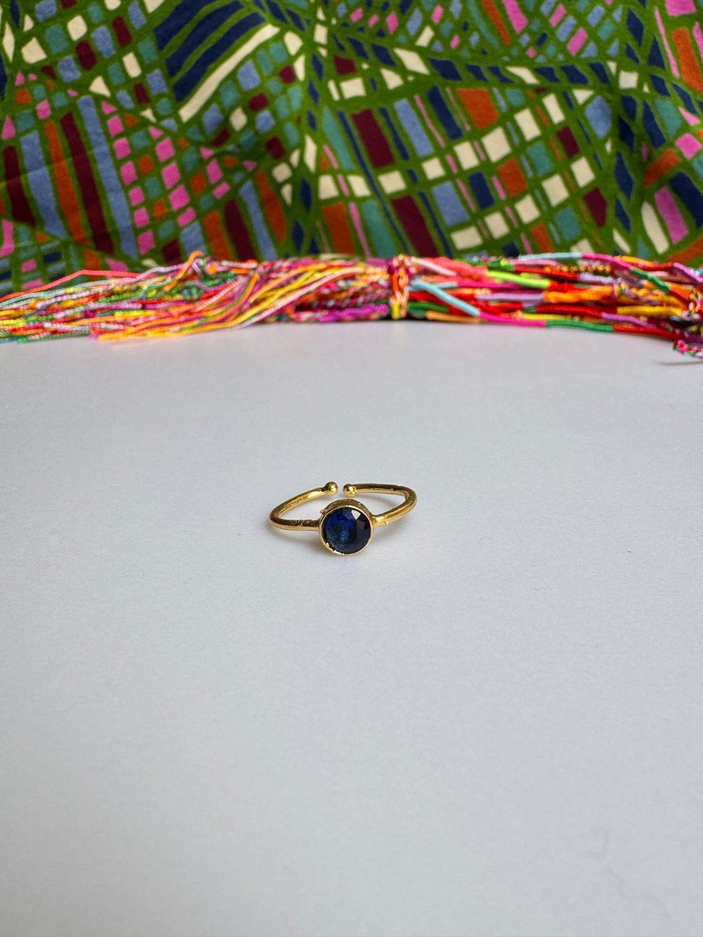 Hypoallergener Messingring mit blauem Glas. Nickelfrei. Einstellbar.
