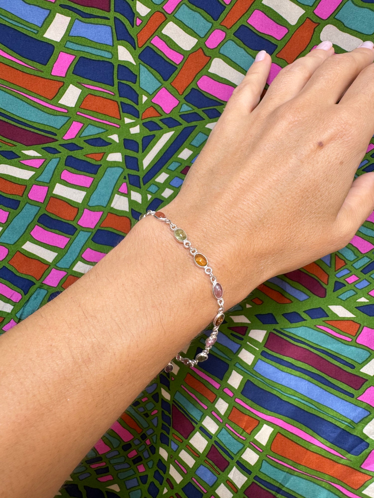 925er Silberarmband mit Turmalintropfen.
