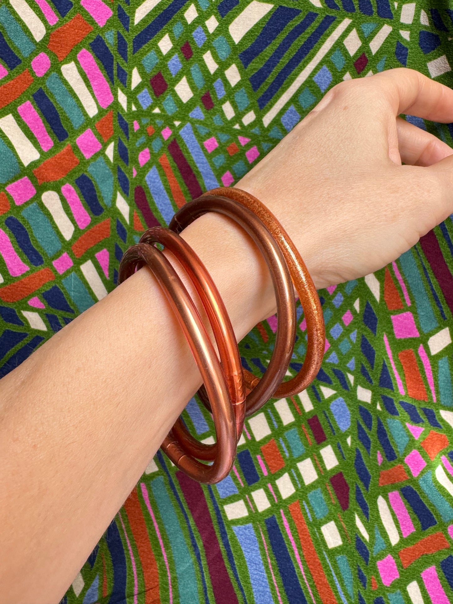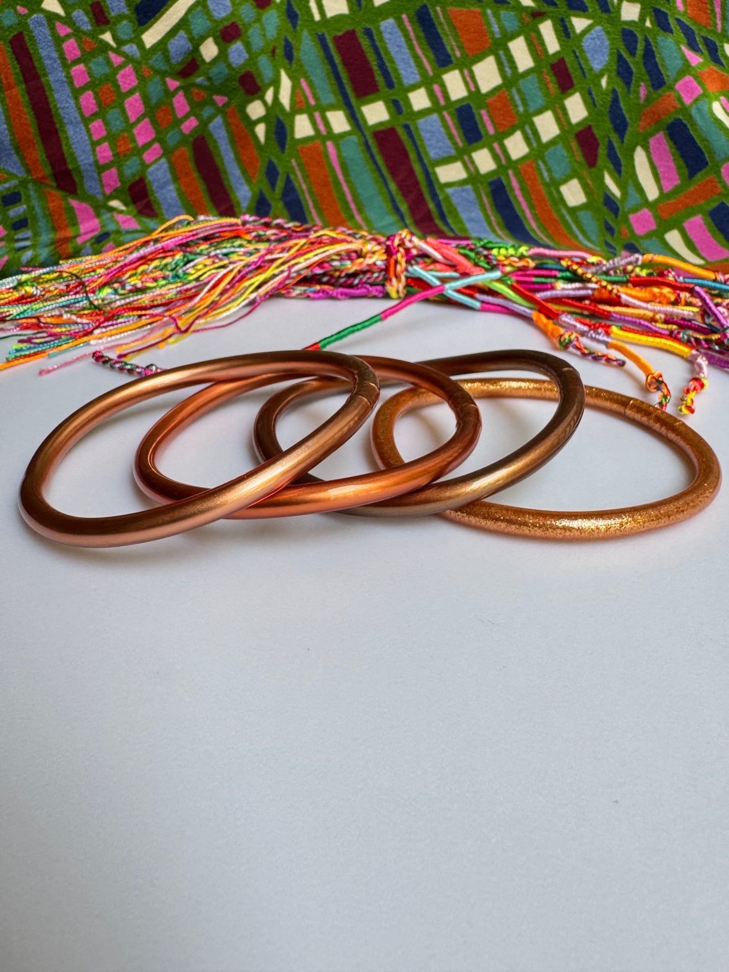 Dieses Set im Gipsy-Stil besteht aus 4 dünnen Gummiarmbändern.