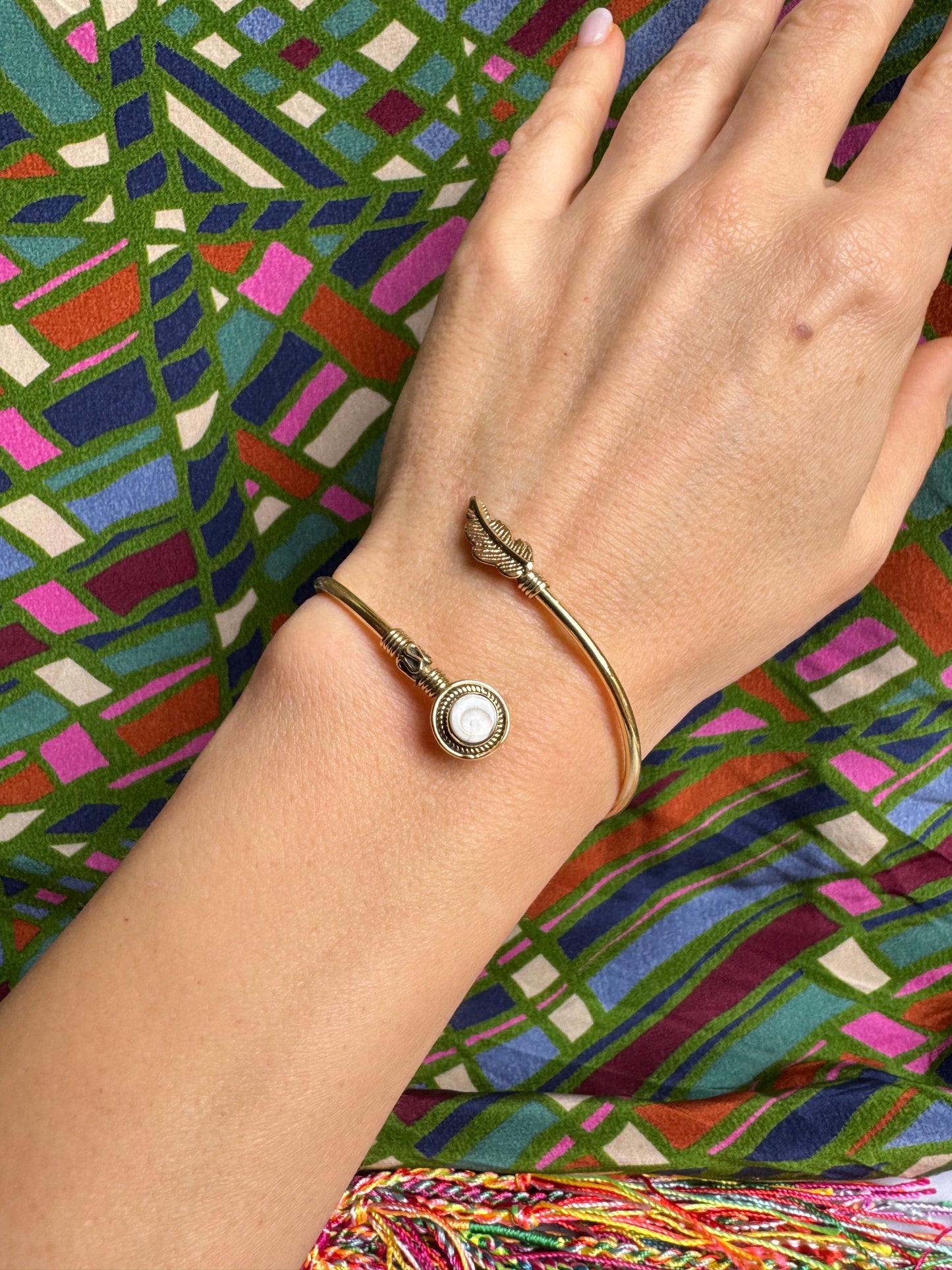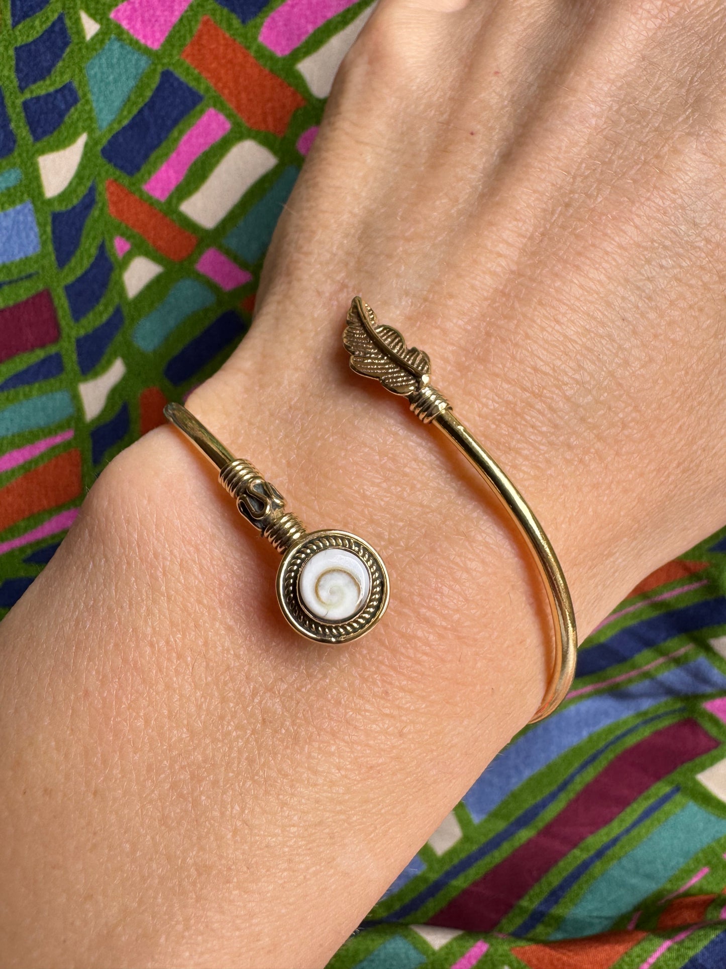 Starres Armband aus hypoallergenem, vergoldetem Messing mit Shivas Augensteineinsatz. Einstellbar.