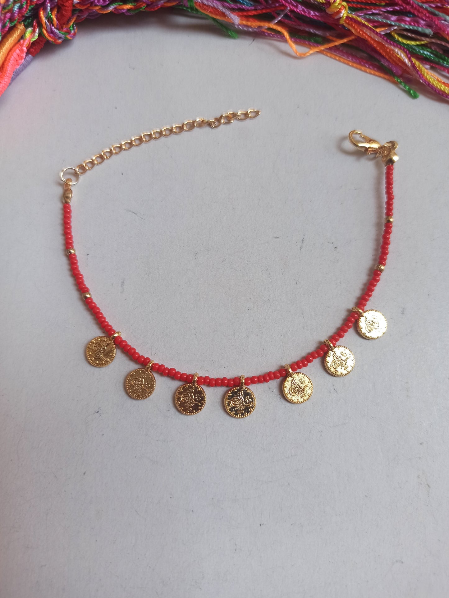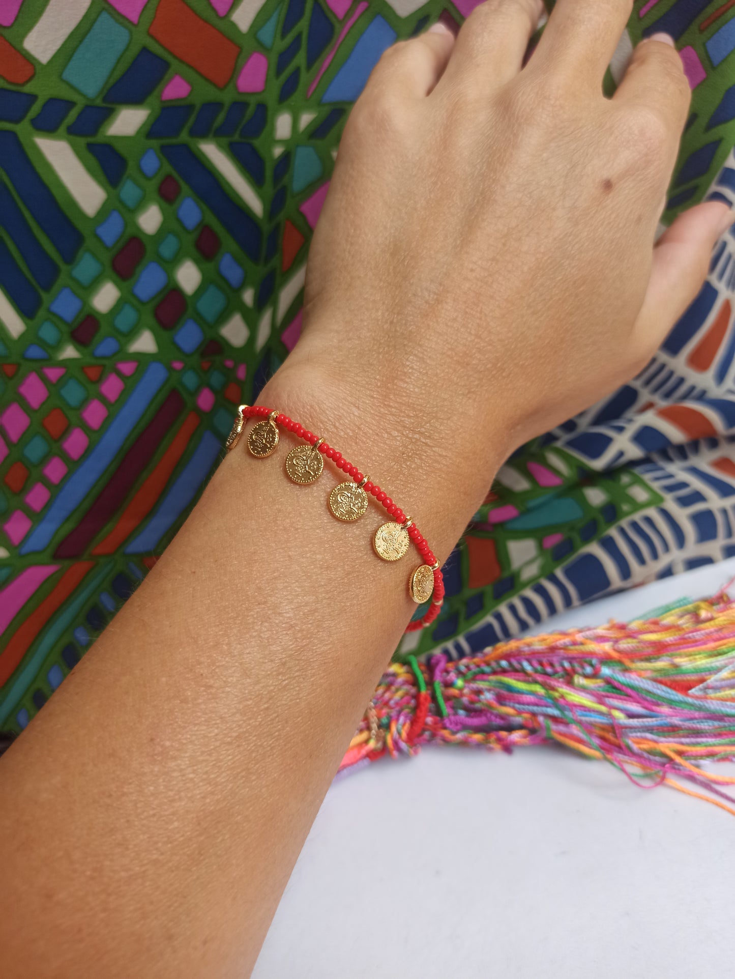 Armband mit Perlen und goldenem Metall. Einstellbar.