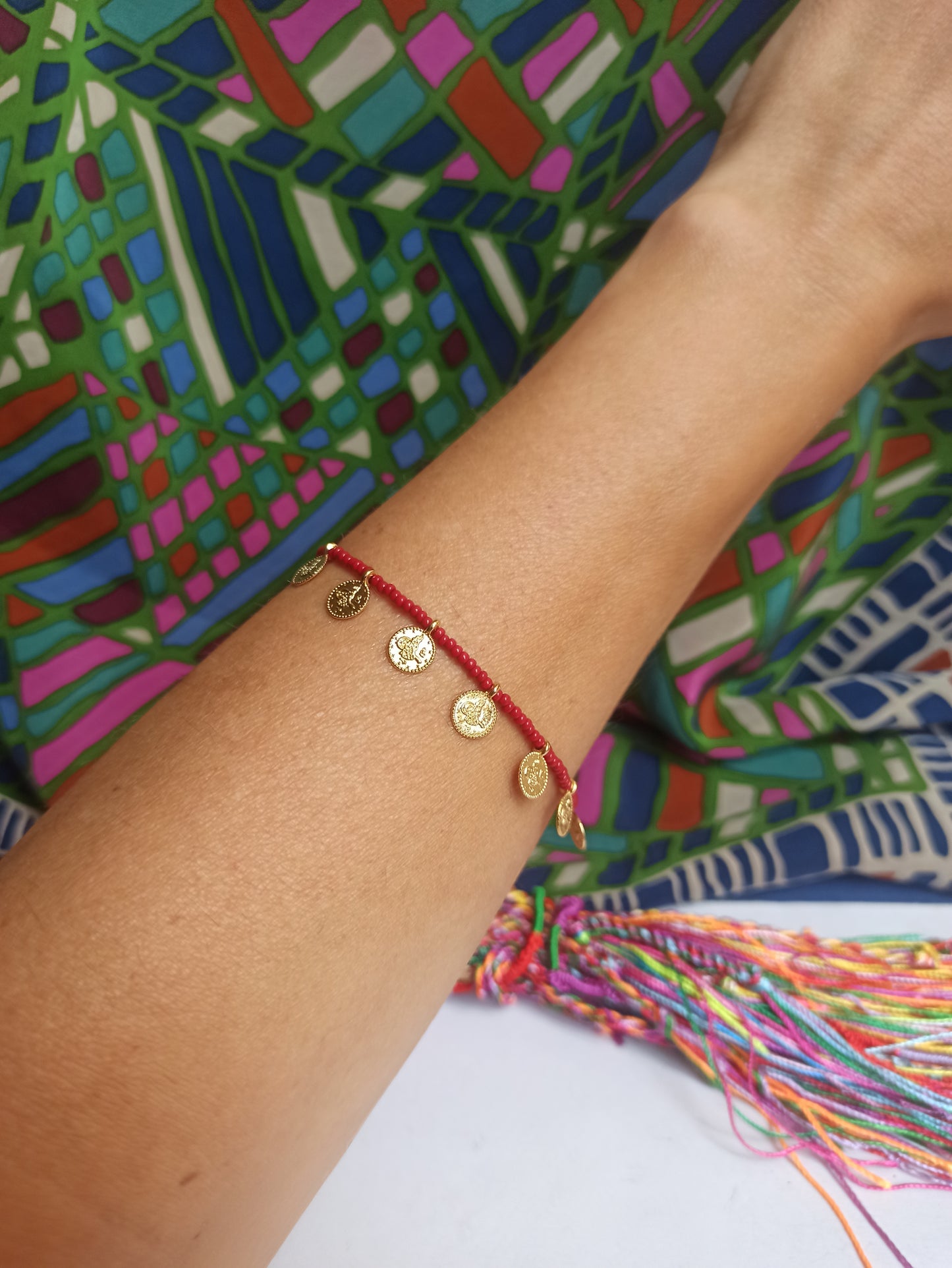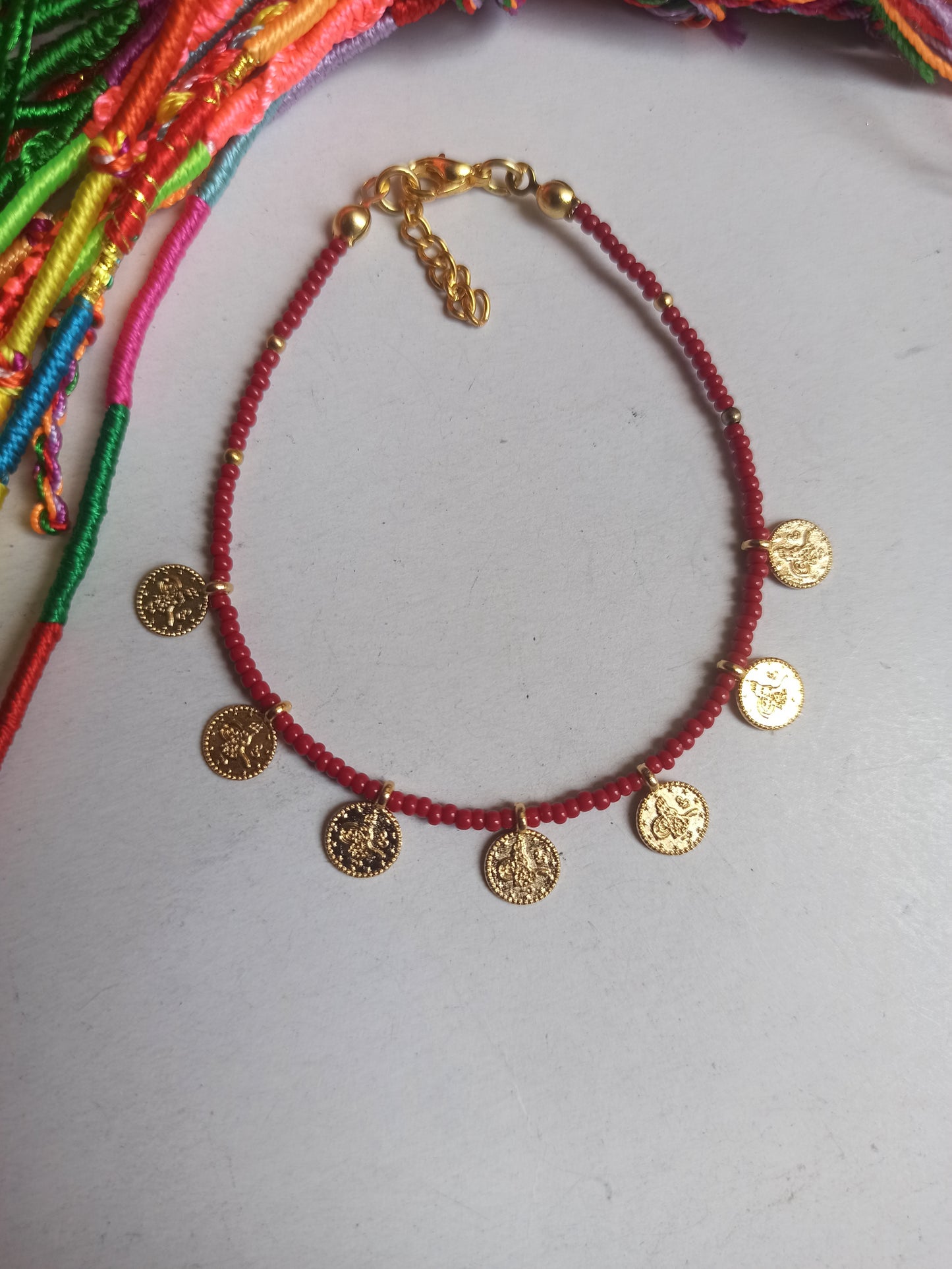 Dünnes Armband mit dunkelroten Münzperlen