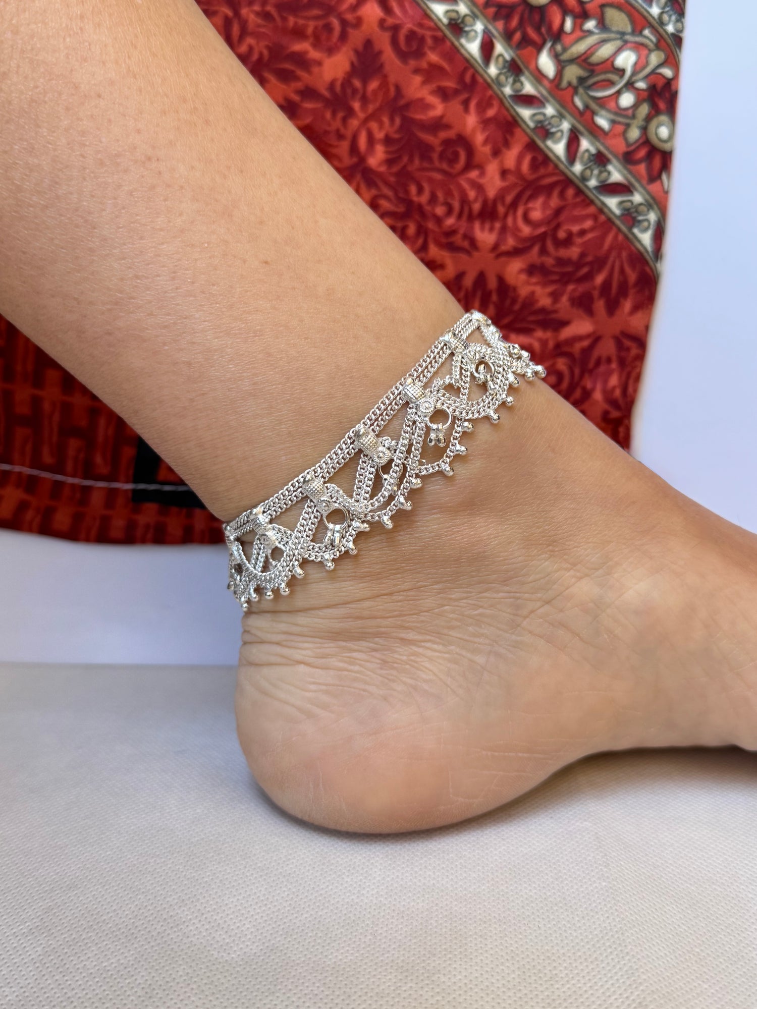 Silbernes Fußkettchen mit Quadraten und Kreisen 6