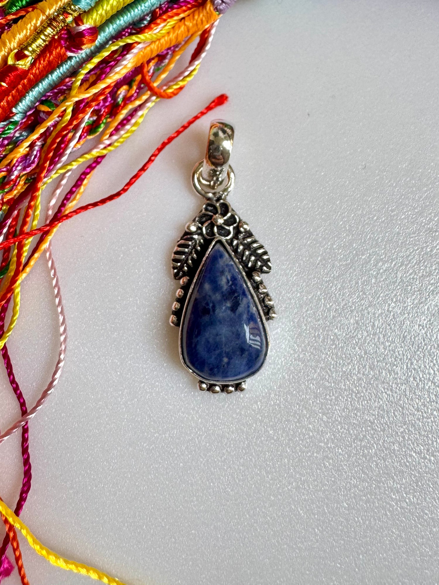 Ciondolo in ottone placcato argento con inserto in lapislazzuli.