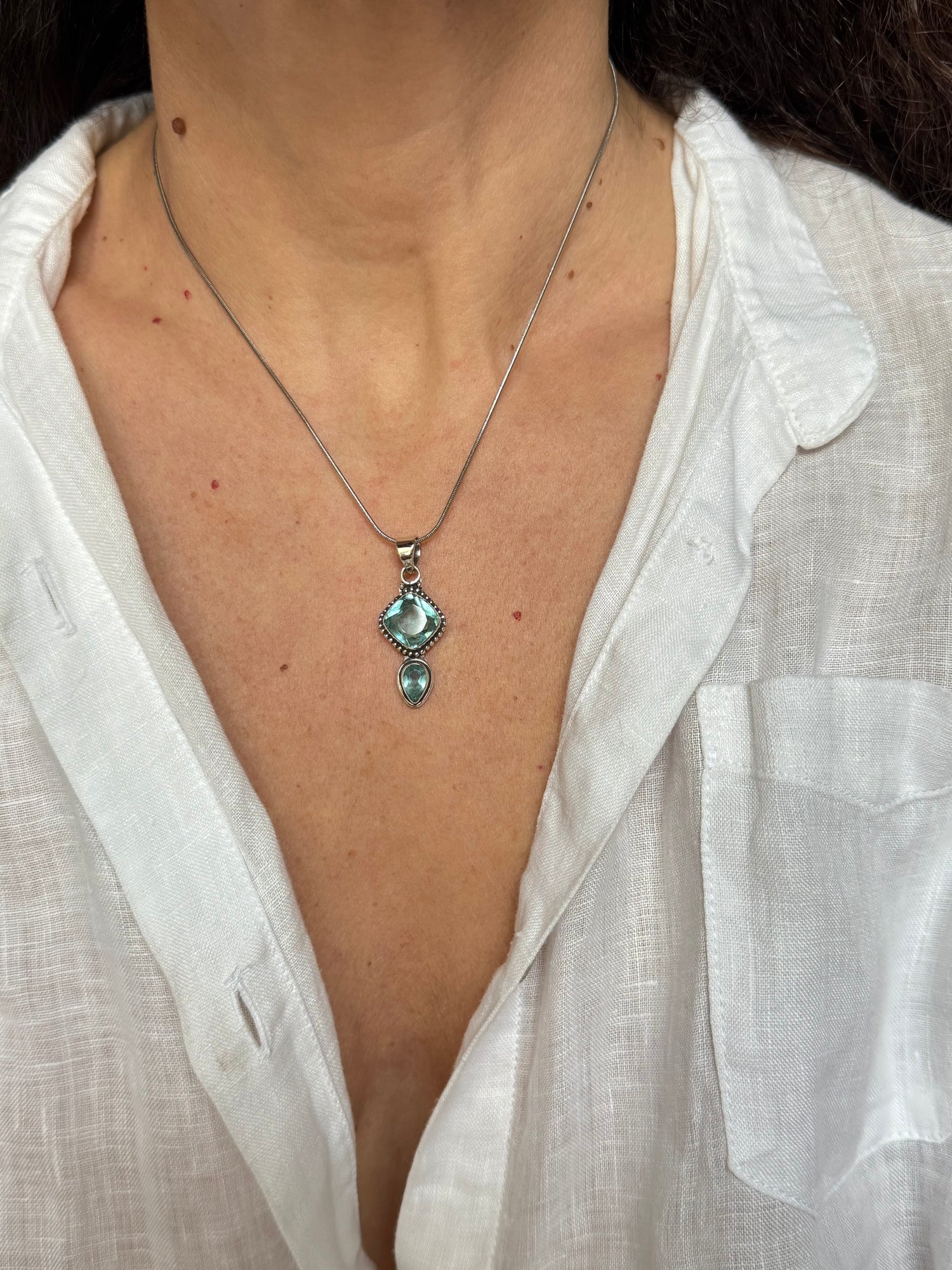 Ciondolo in argento 925 con pietra acquamarina.