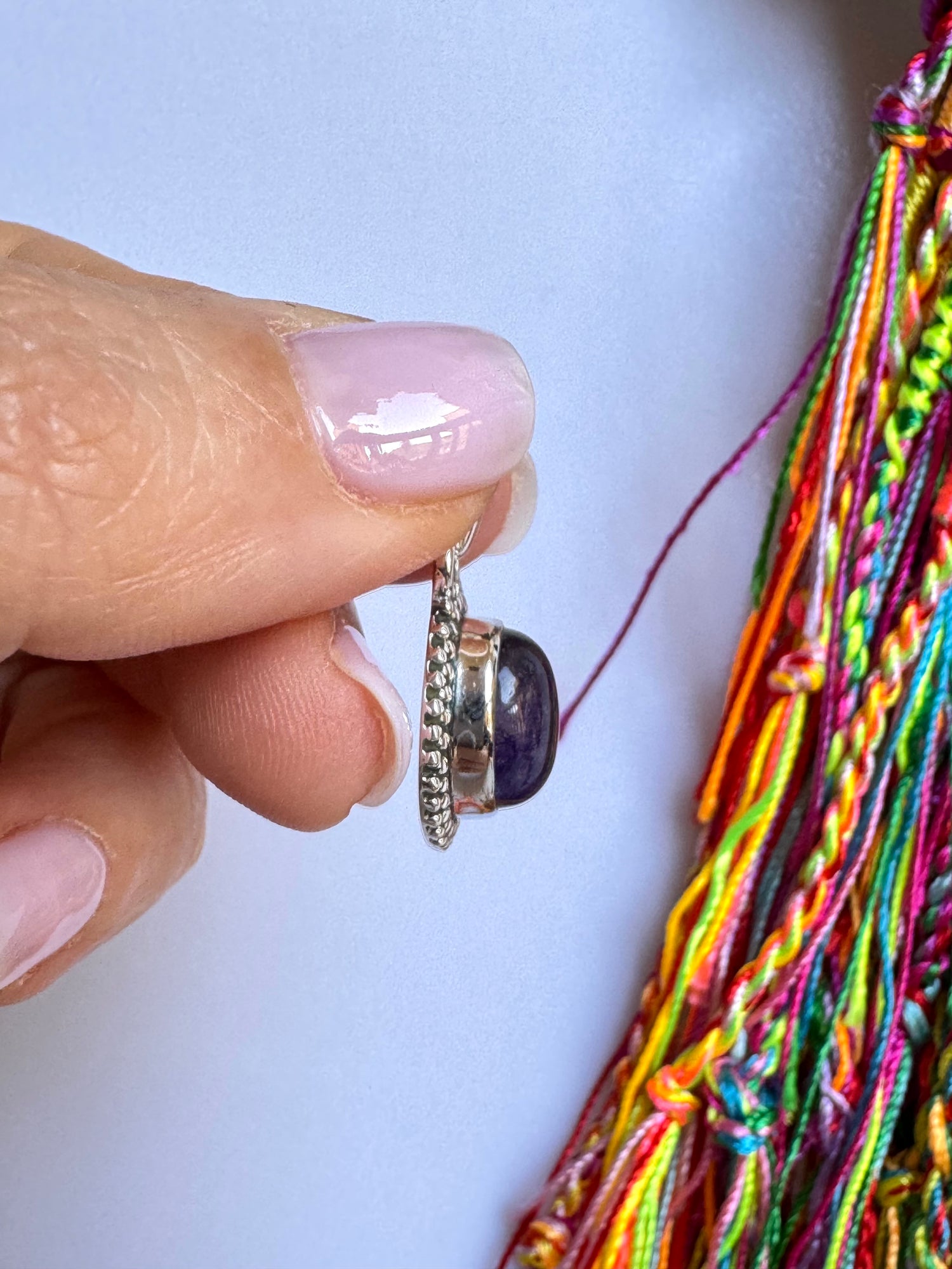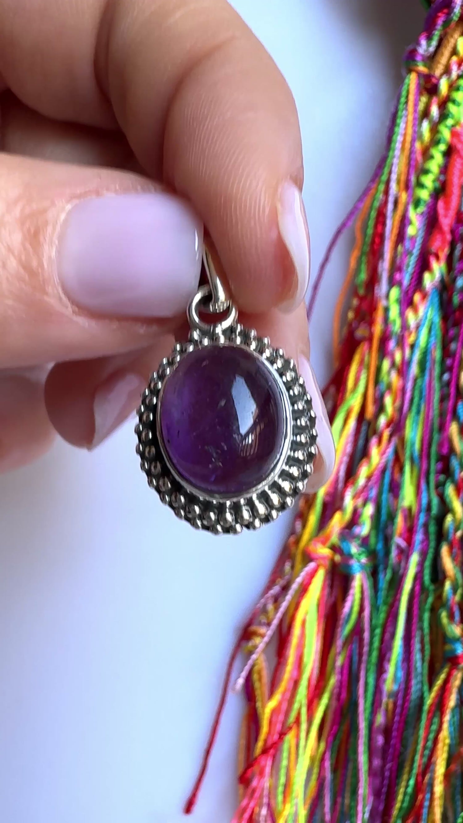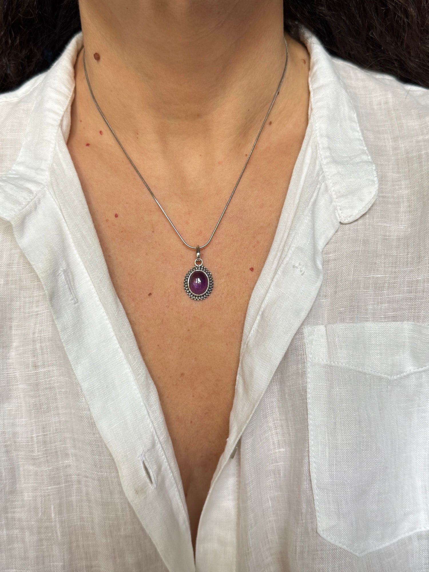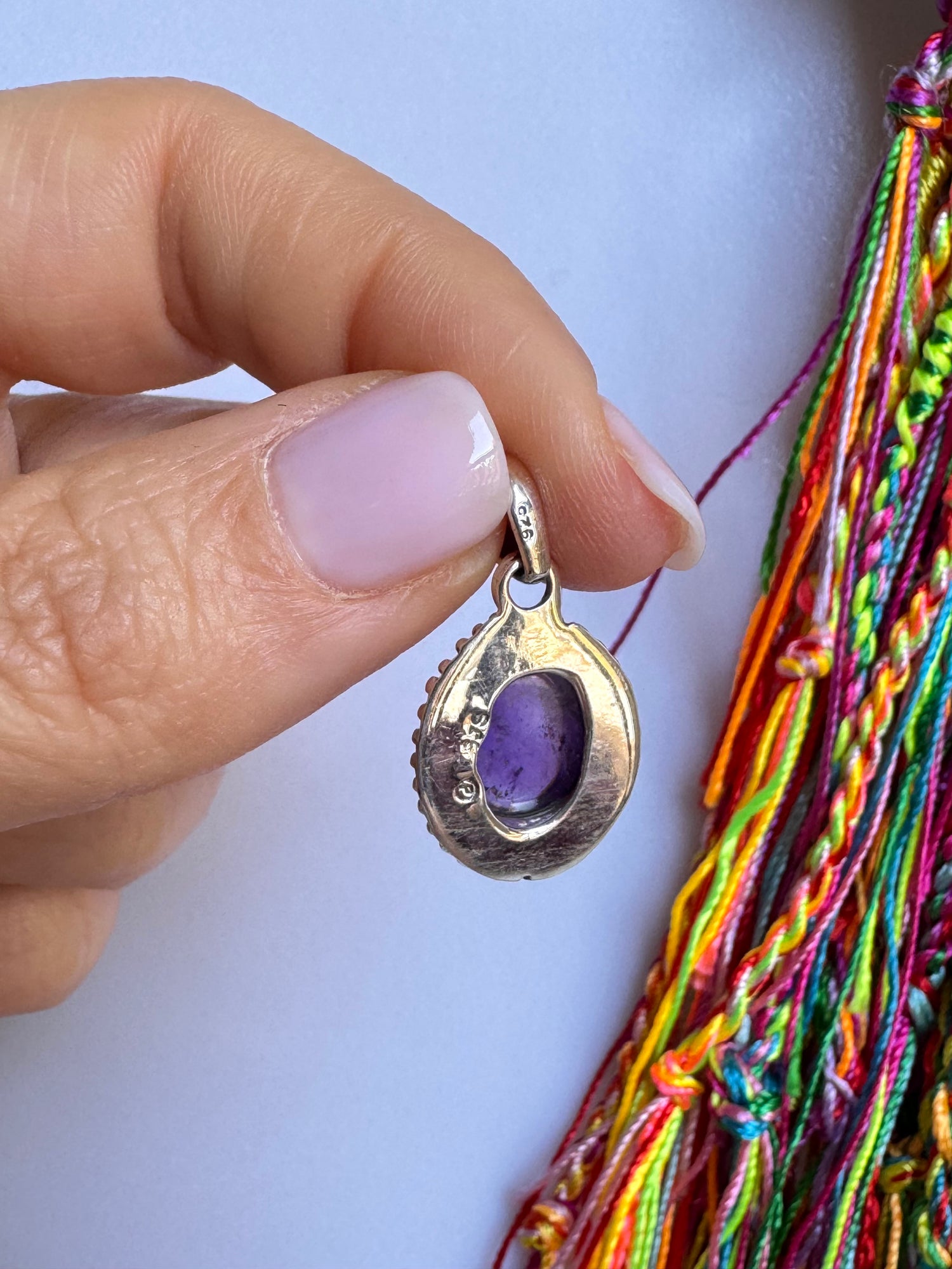 Ciondolo in argento 925 con incastonata un’ametista.