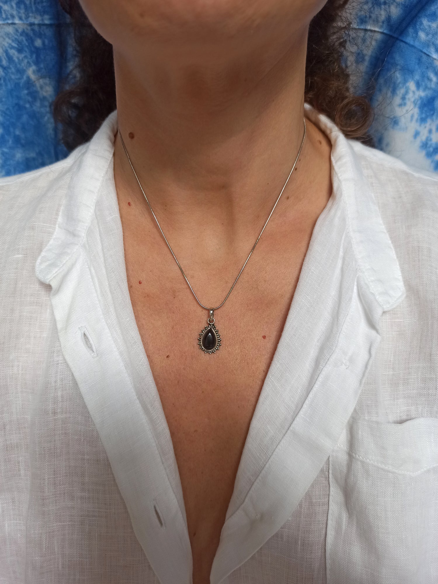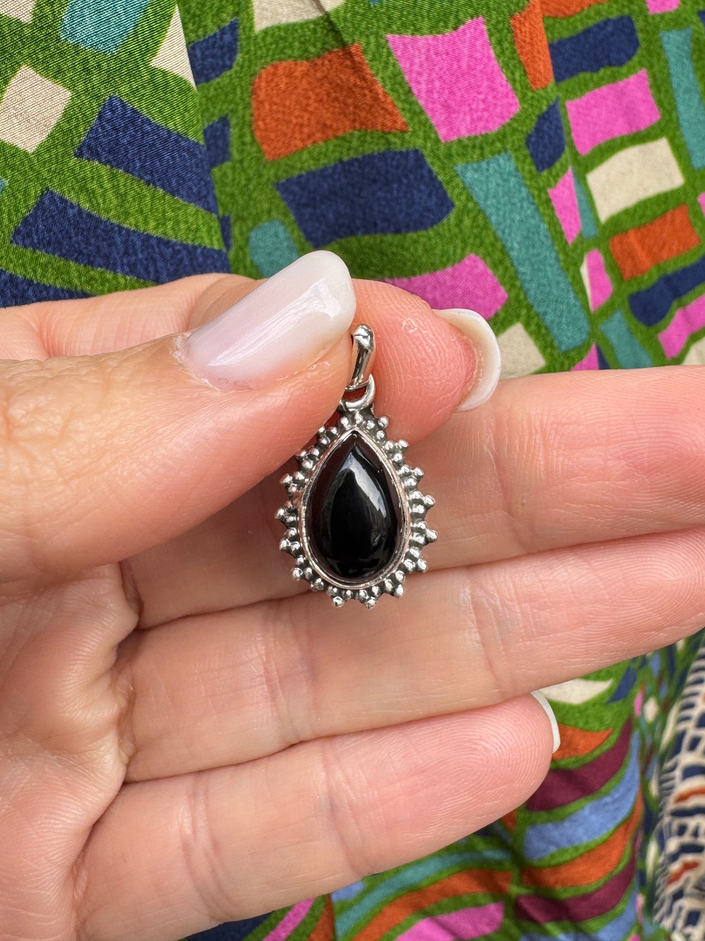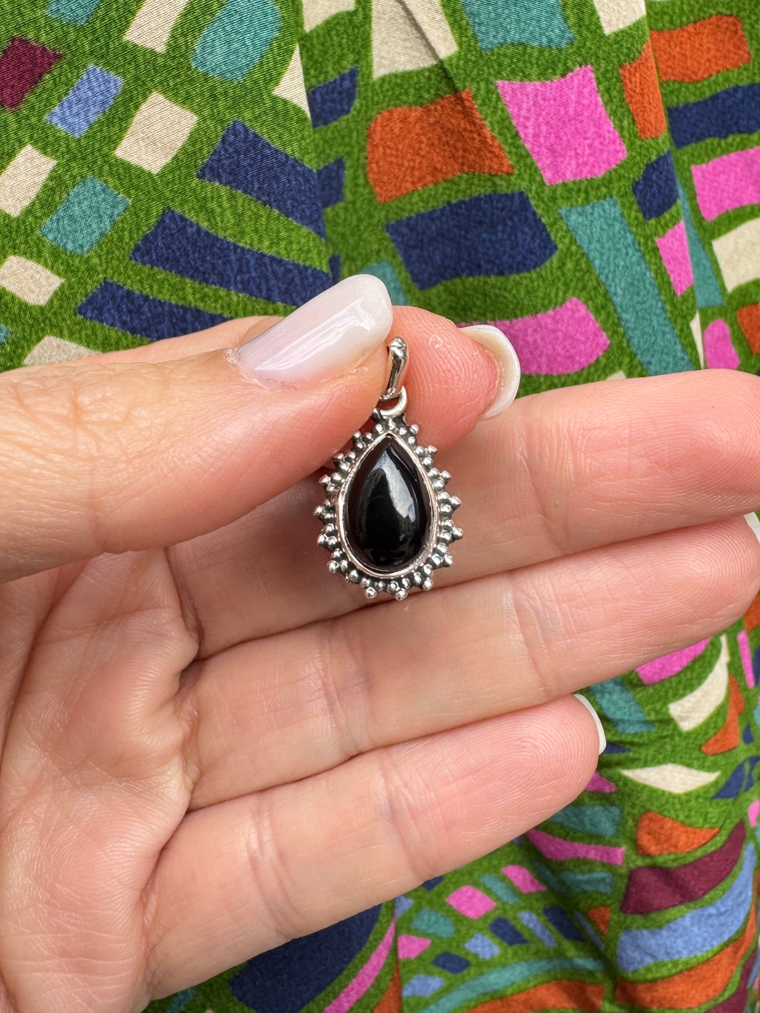 Anhänger aus 925er Silber mit hartem schwarzem Onyxstein.