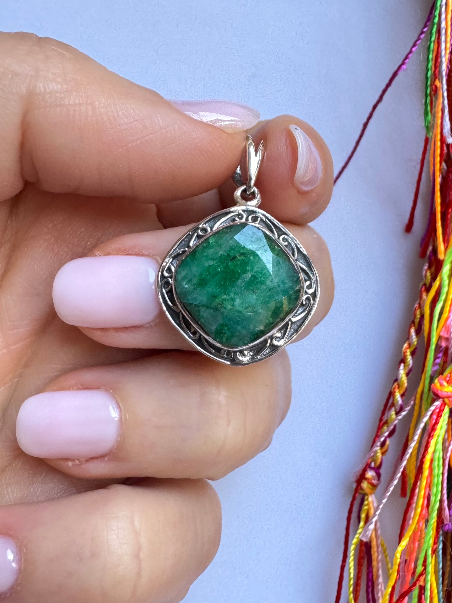 Ciondolo argento 925 radice di smeraldo V10