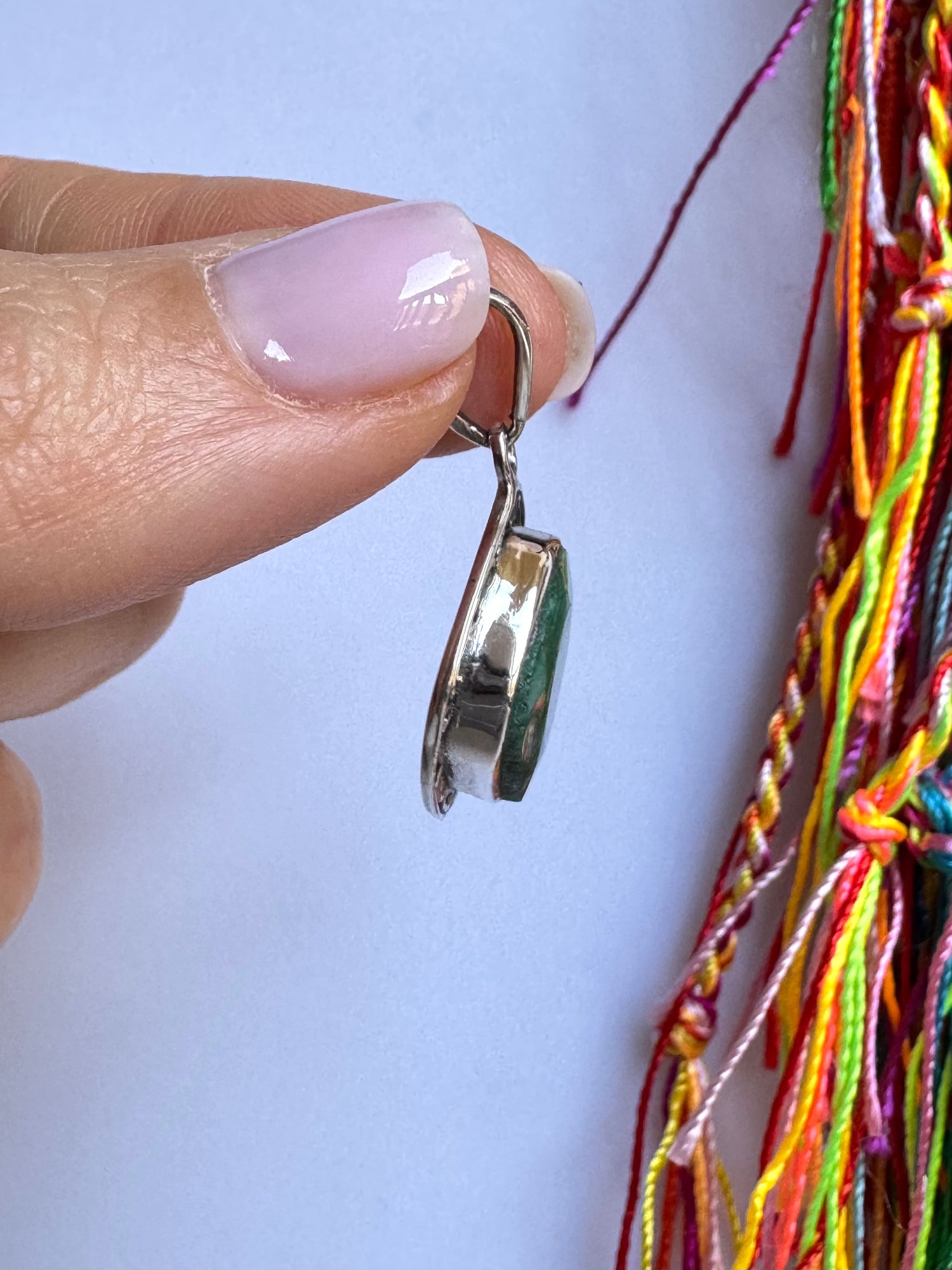 Ciondolo in argento 925 con incastonato una radice di smeraldo.