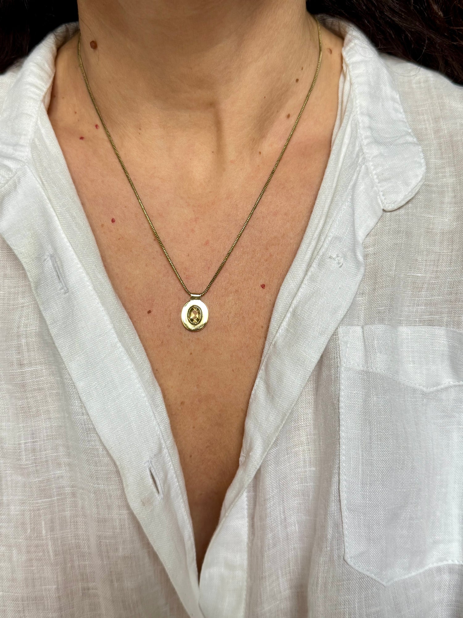 Catenina con ciondolo in ottone con inserto simil citrino.