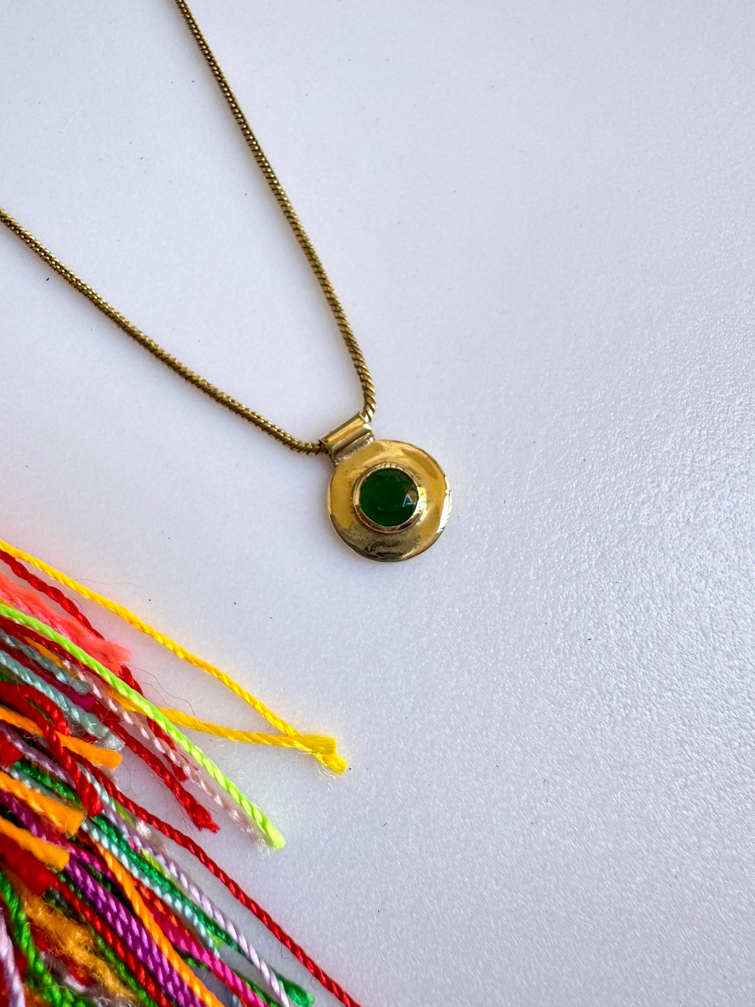 Collana dorata con ciondolo verde