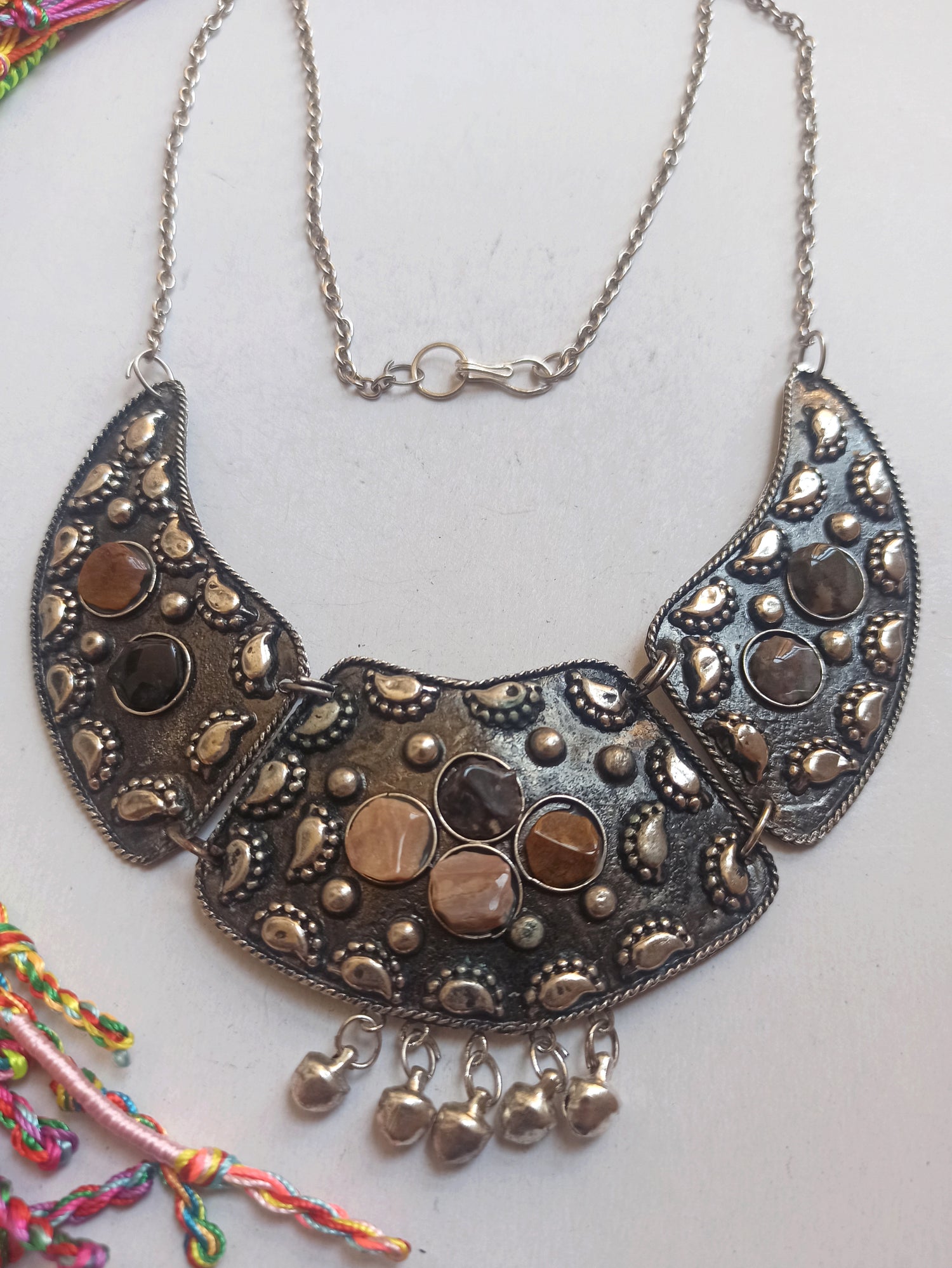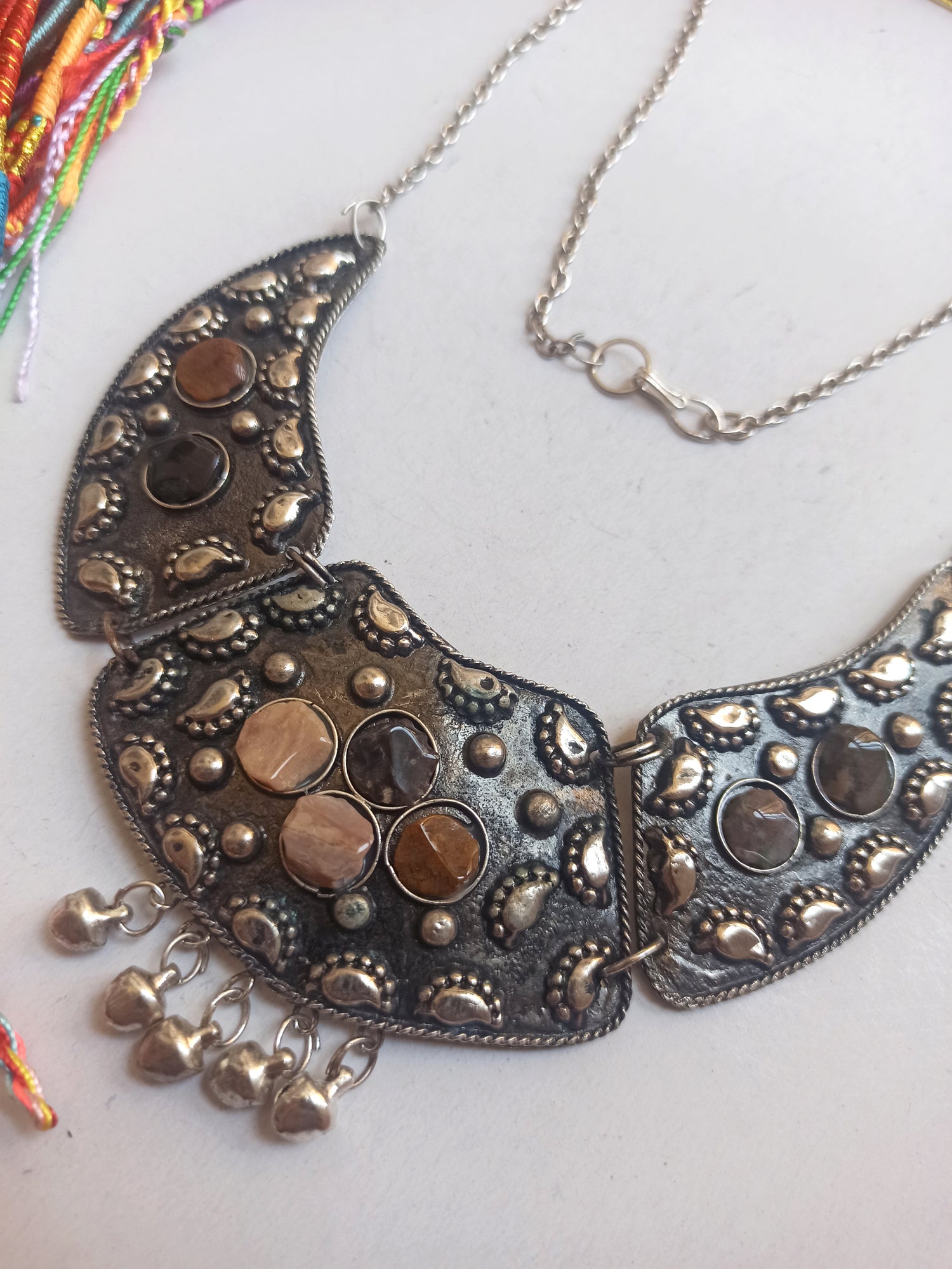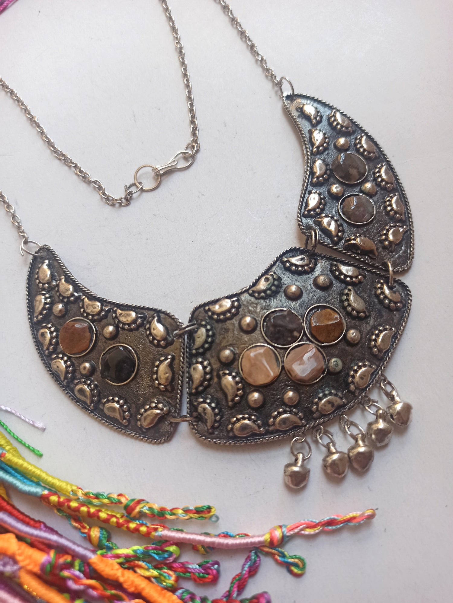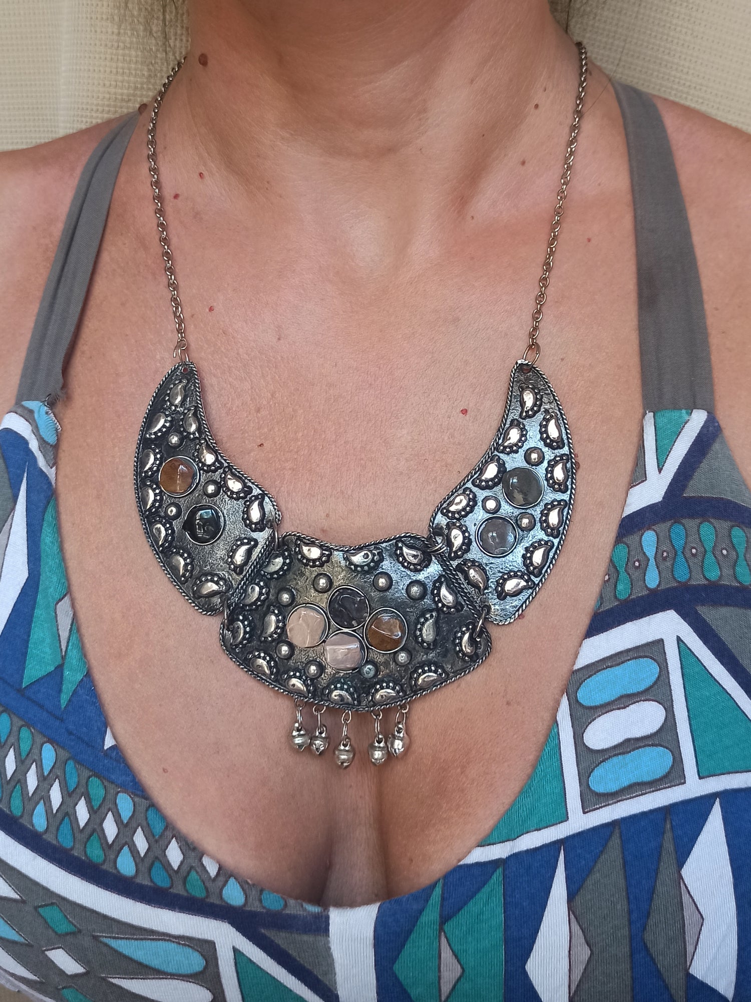 Komplett handgefertigtes Lätzchen aus Metalllegierung mit echten Steinverzierungen.