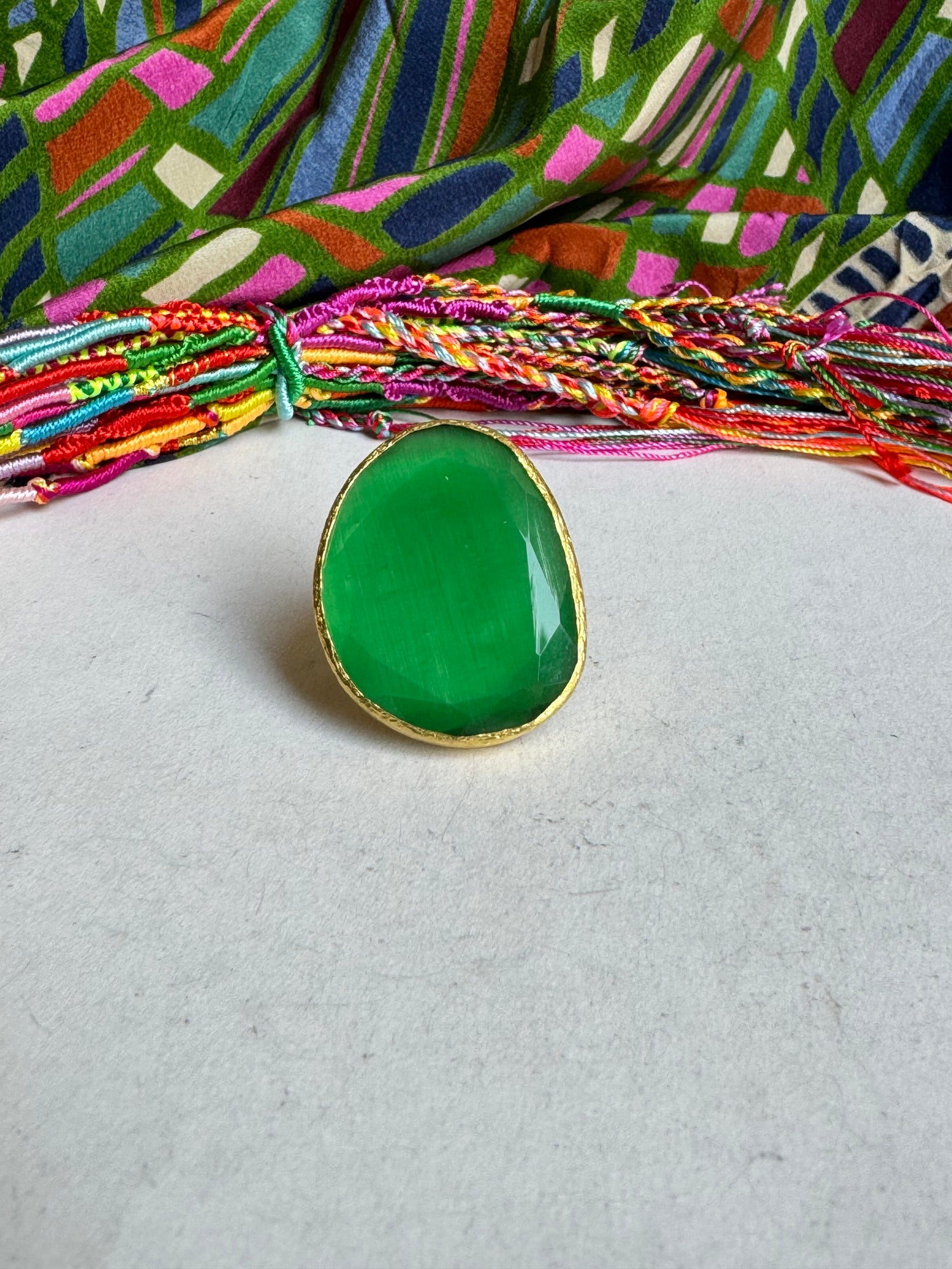 Hypoallergener Messingring mit grünem Stein. Nickelfrei. Einstellbar.