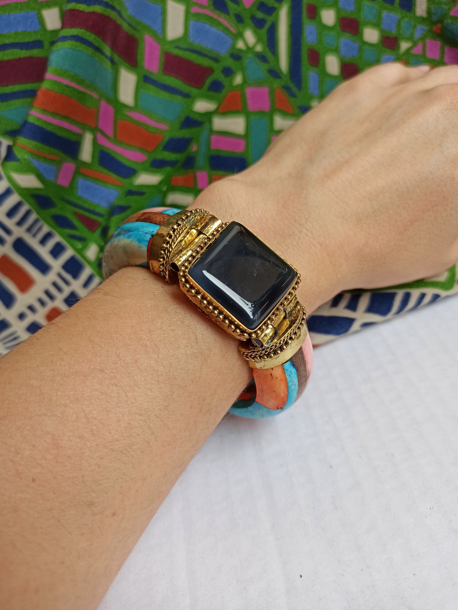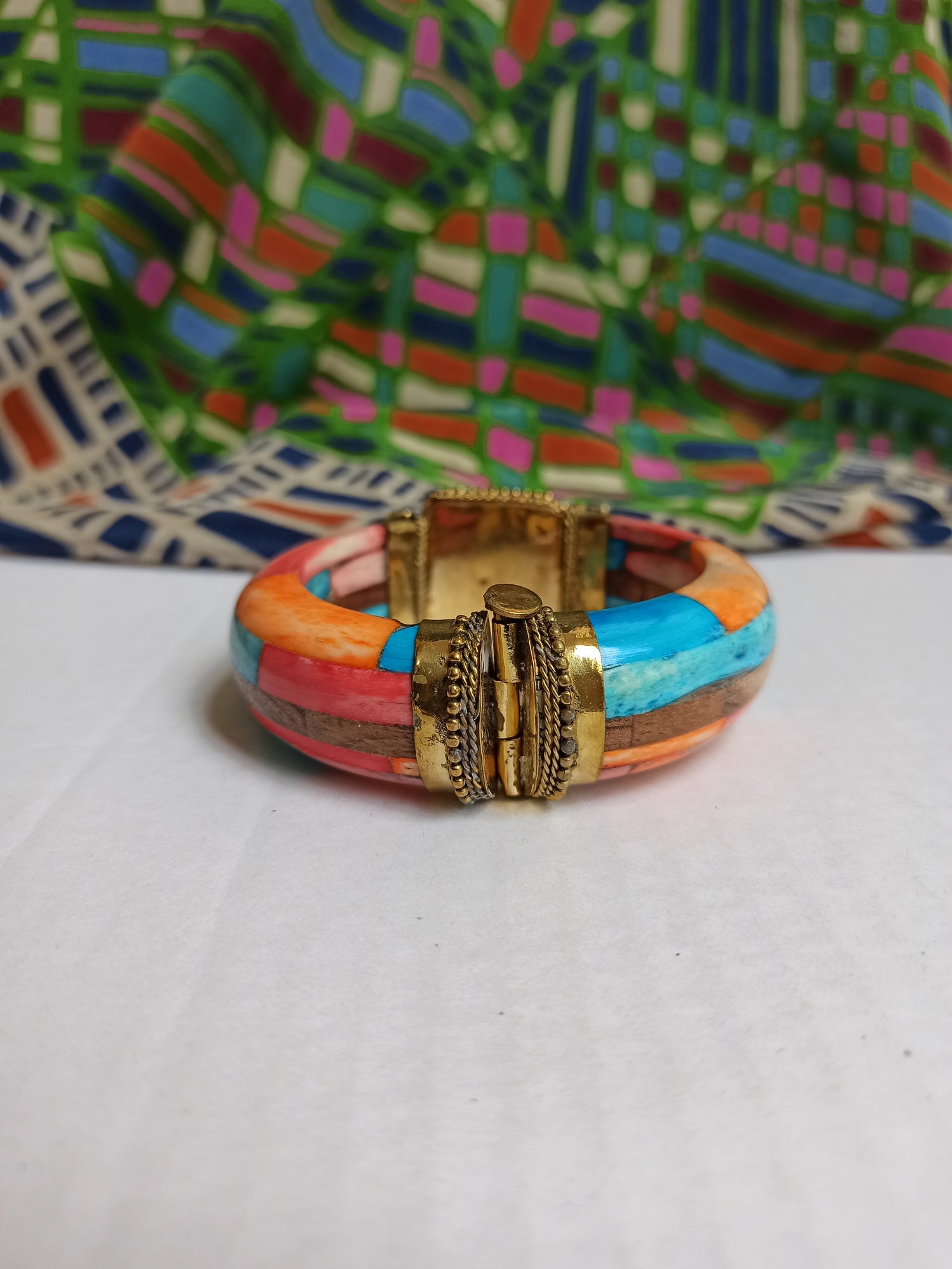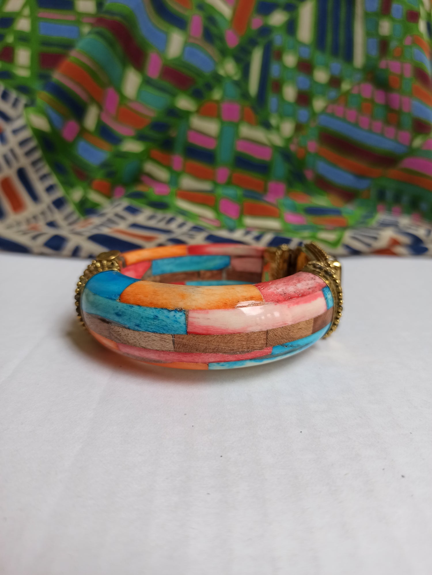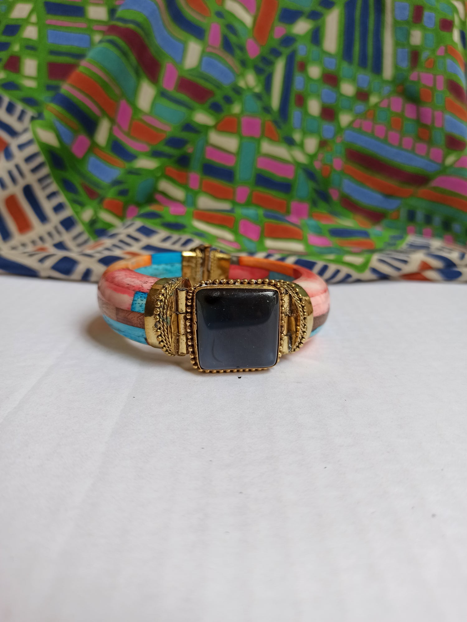 Großes, mehrfarbiges, starres Armband mit schattiertem schwarzem Einsatz