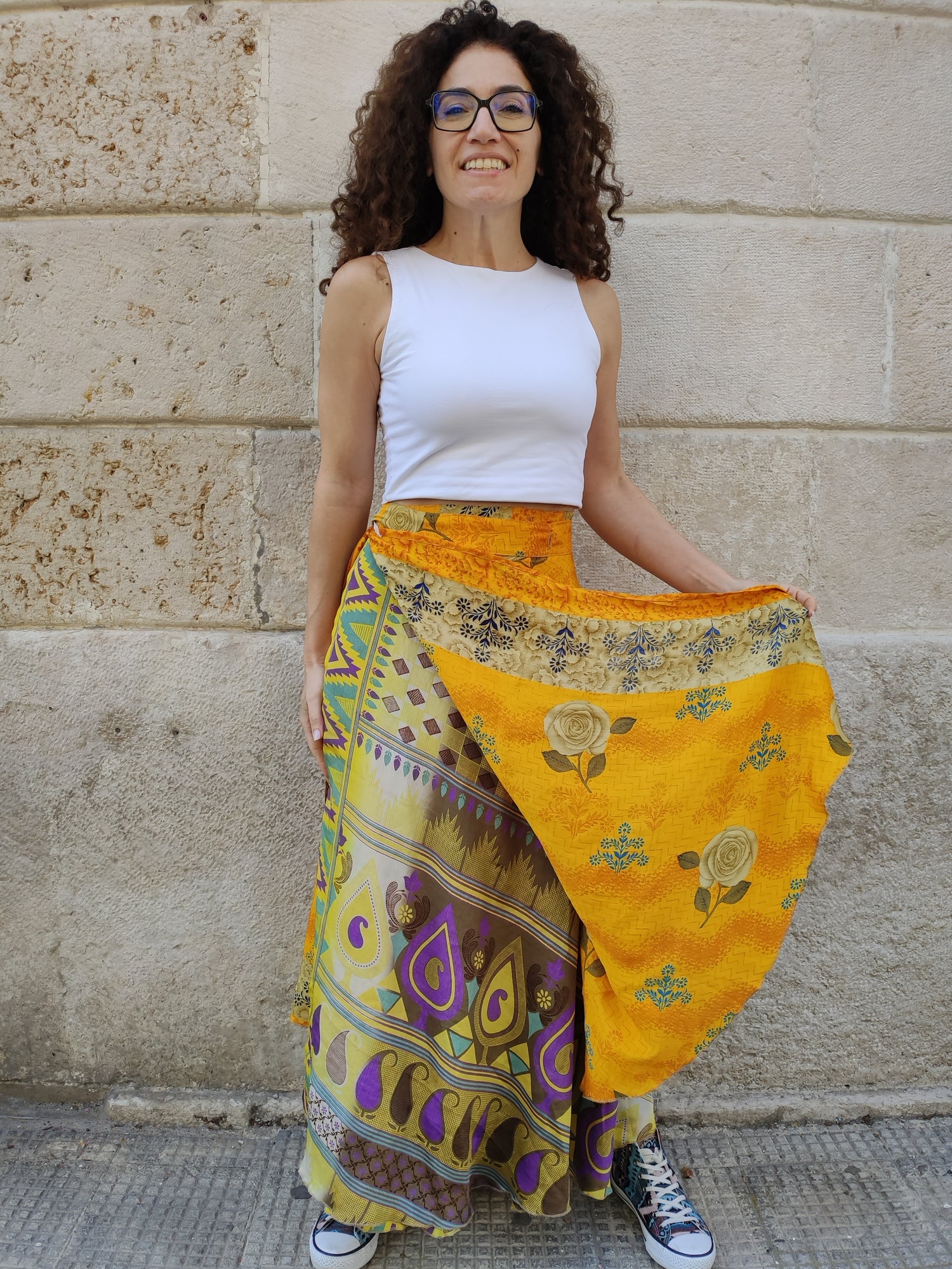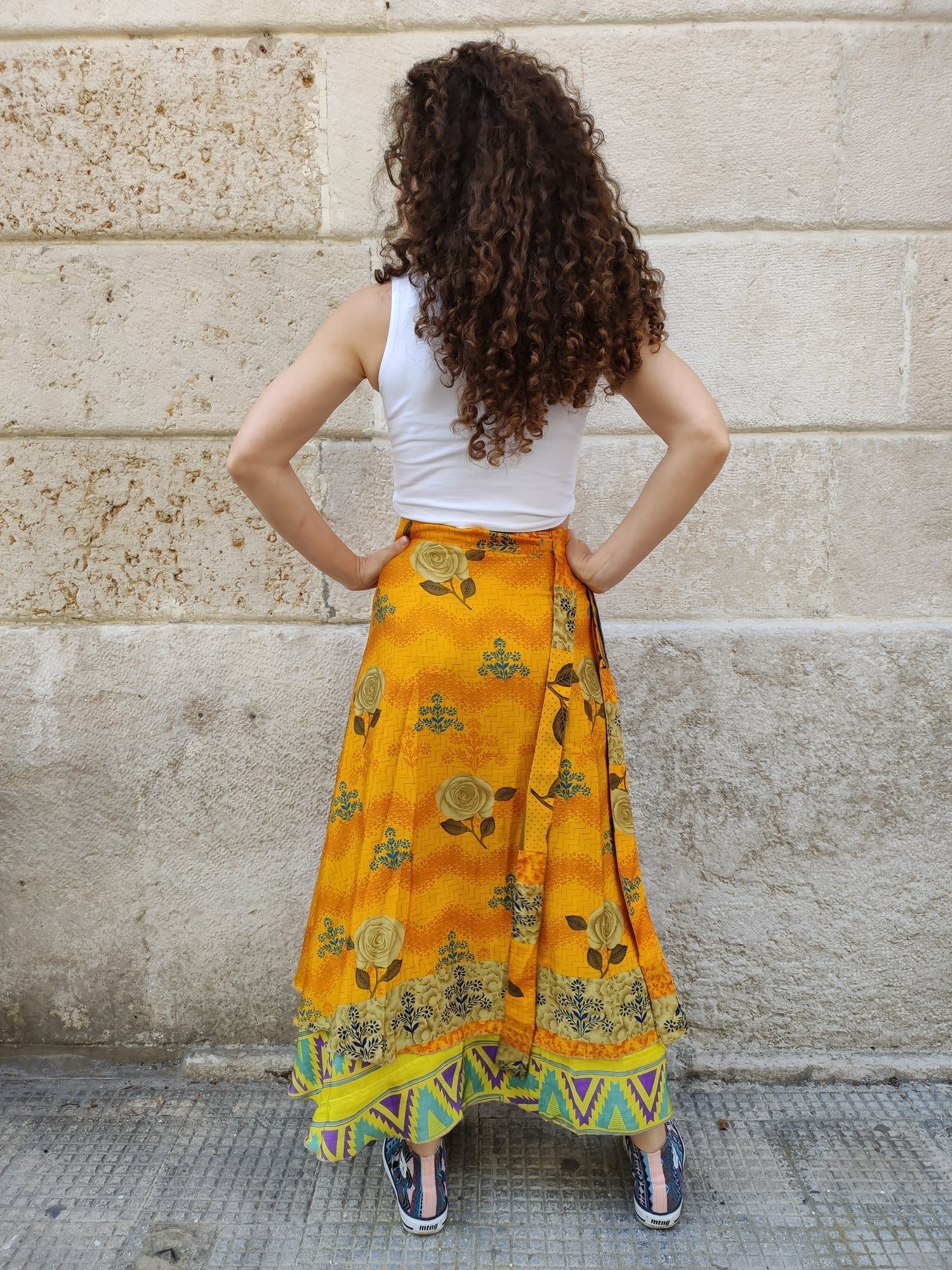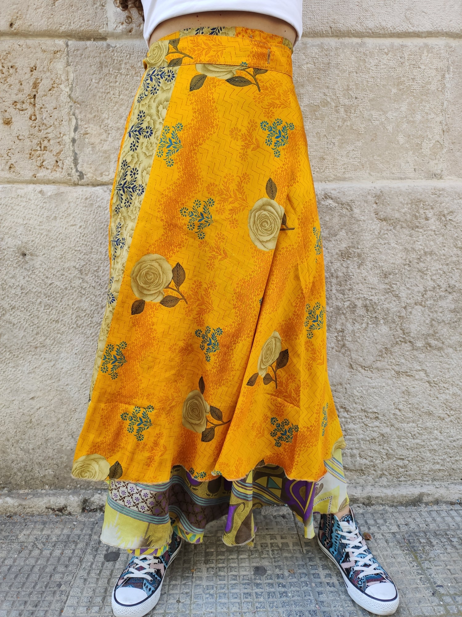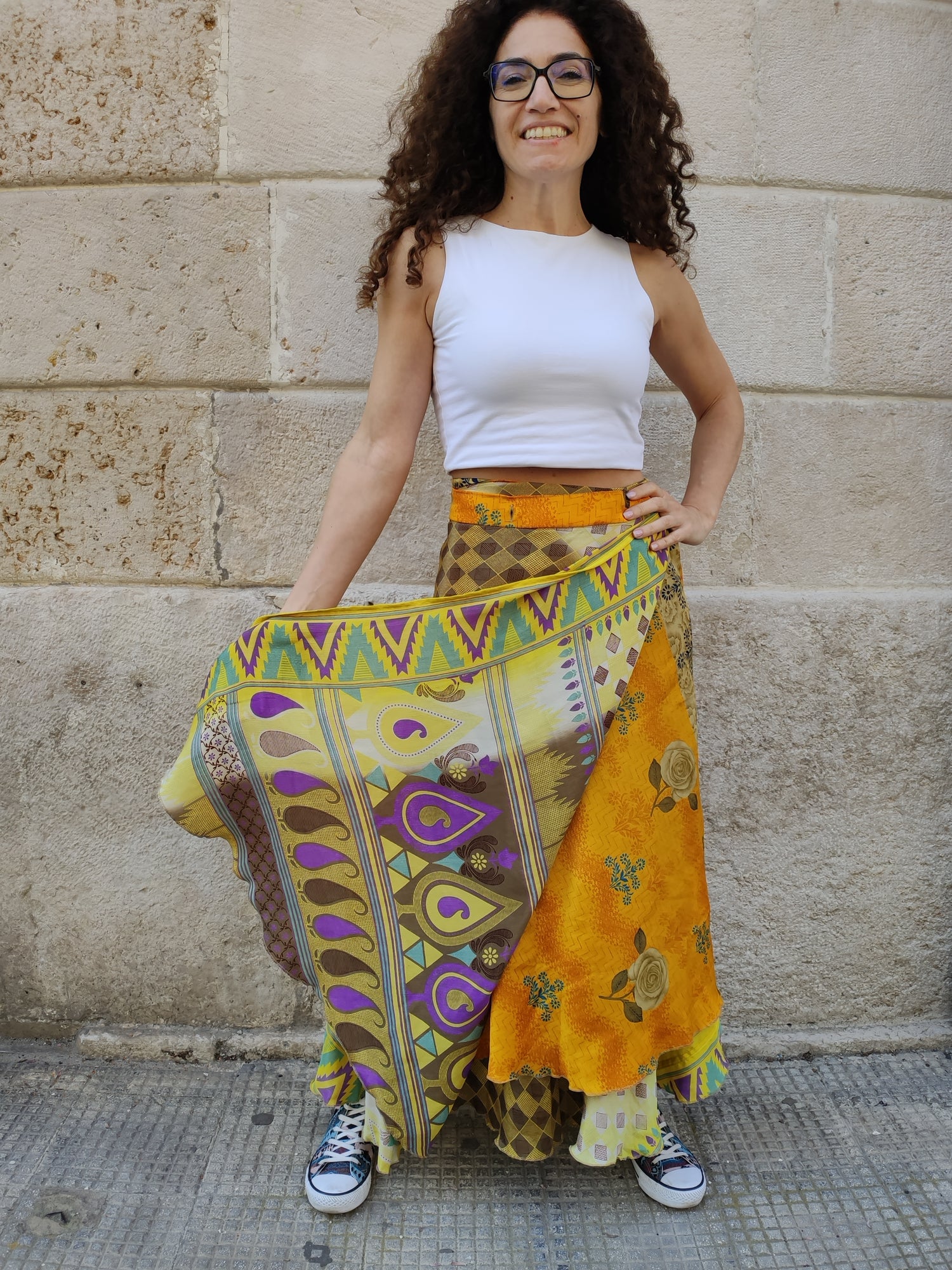 Wickelrock im Zigeunerstil handgefertigt aus Vintage-Sari-Stoffen.