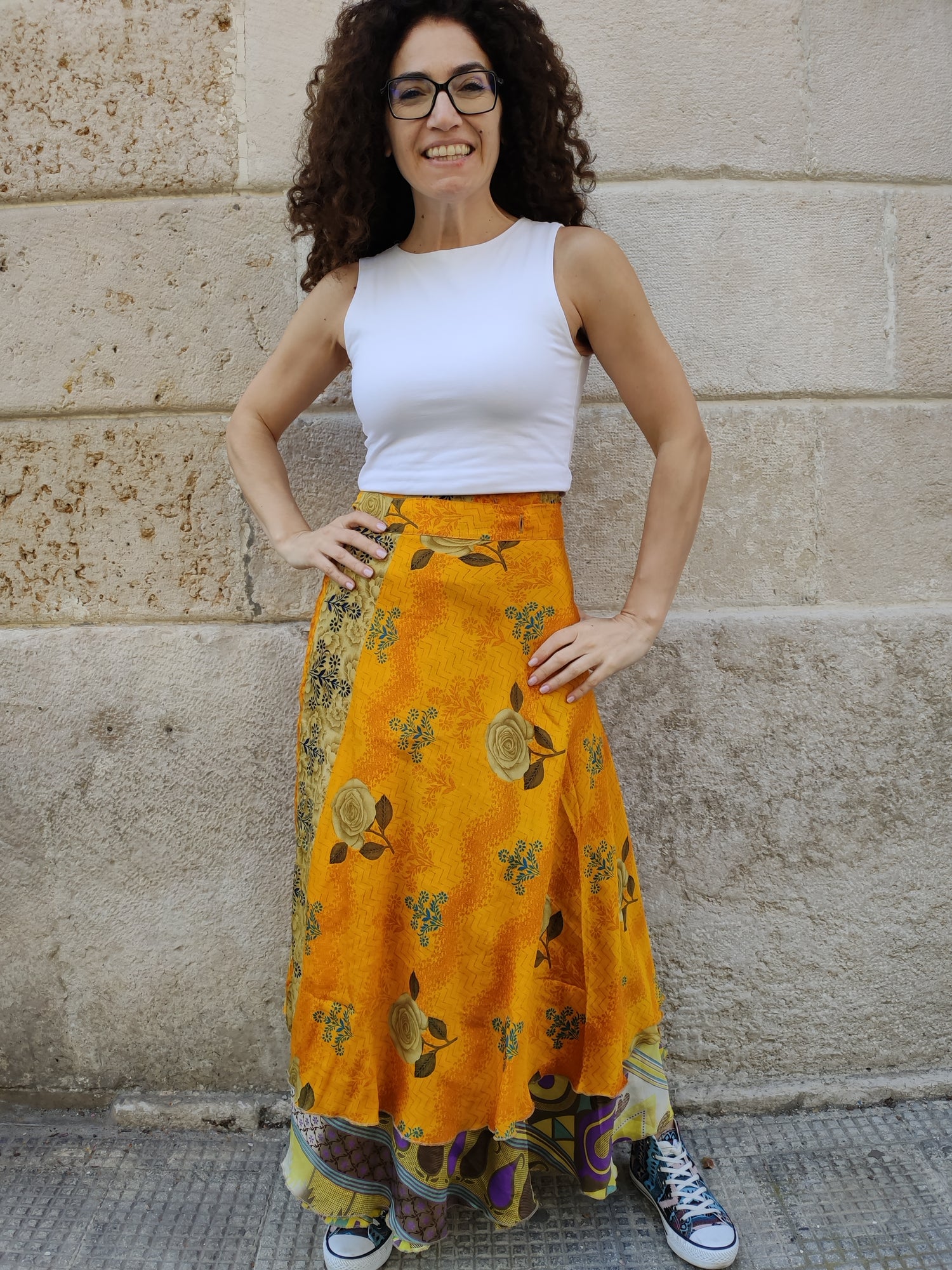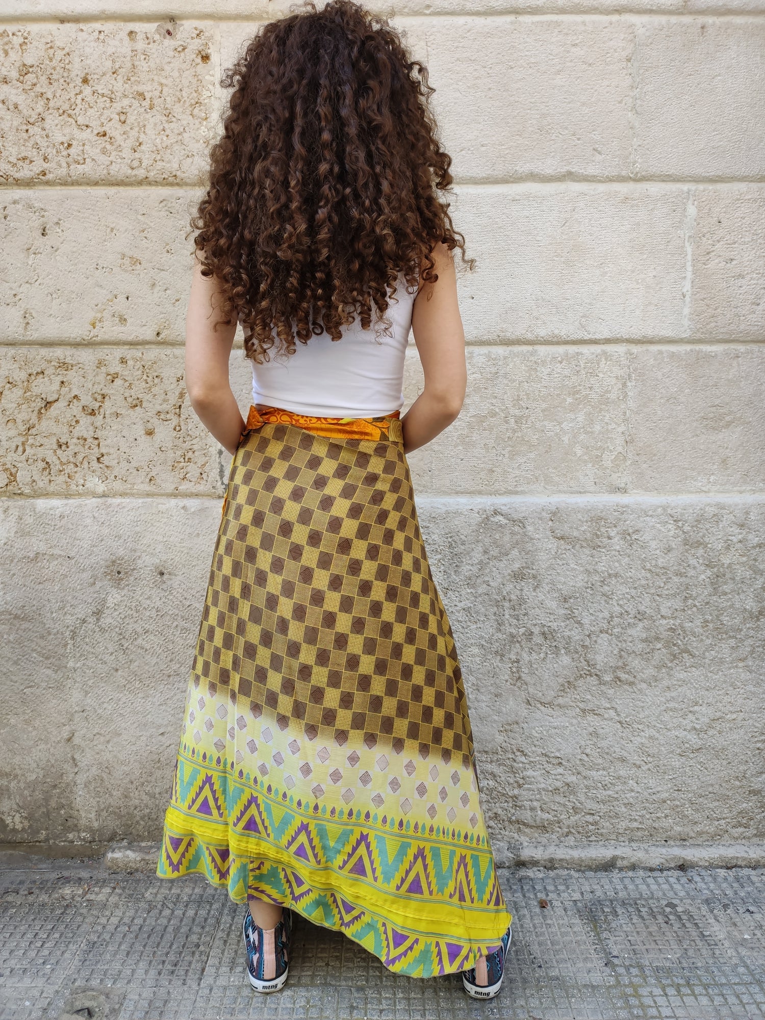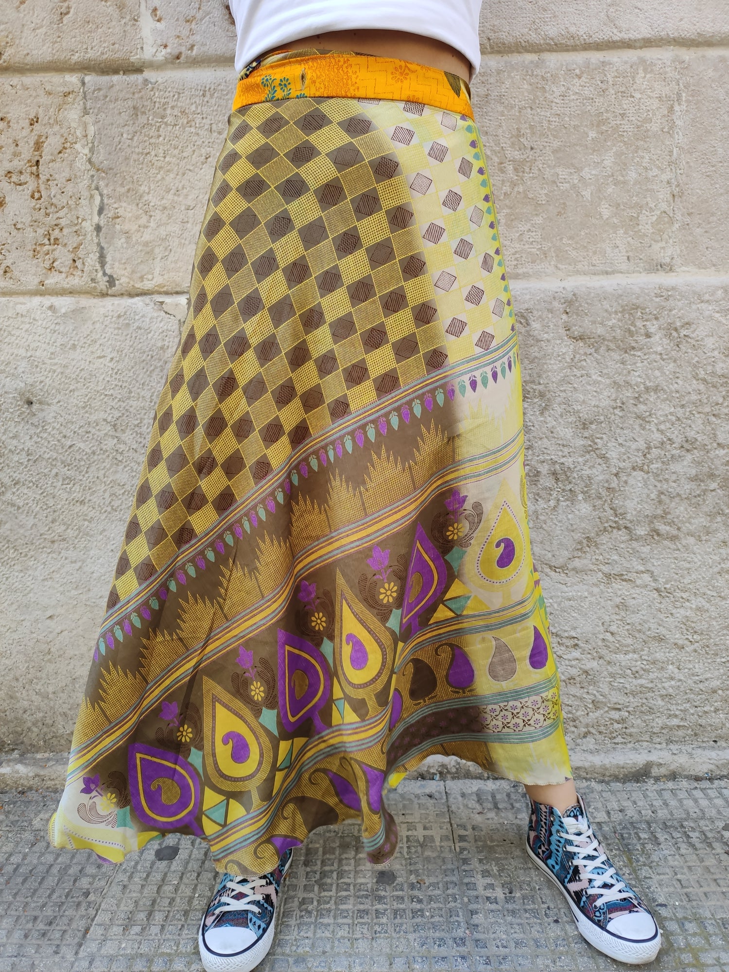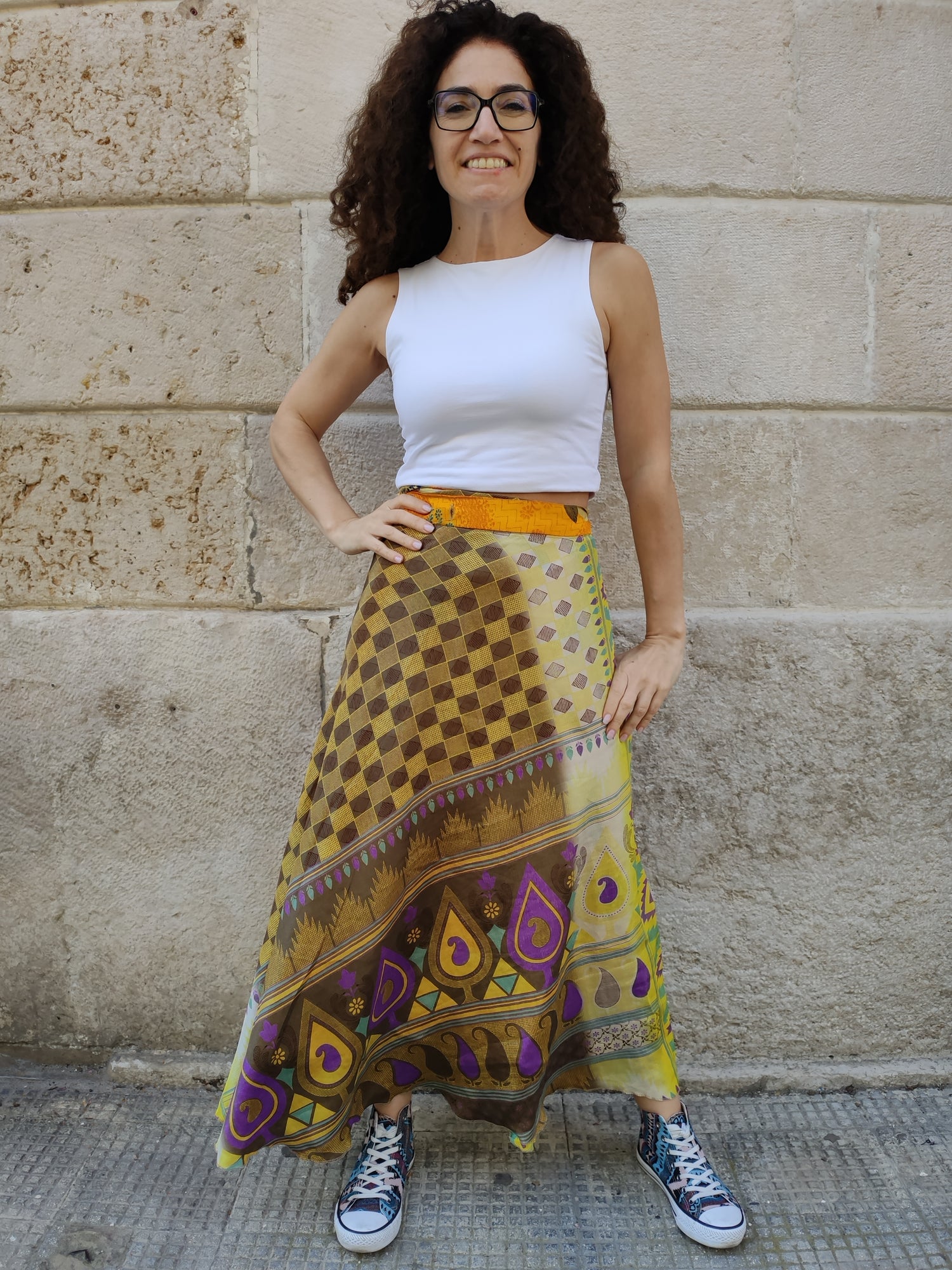 Wickelrock im Zigeunerstil handgefertigt aus Vintage-Sari-Stoffen.