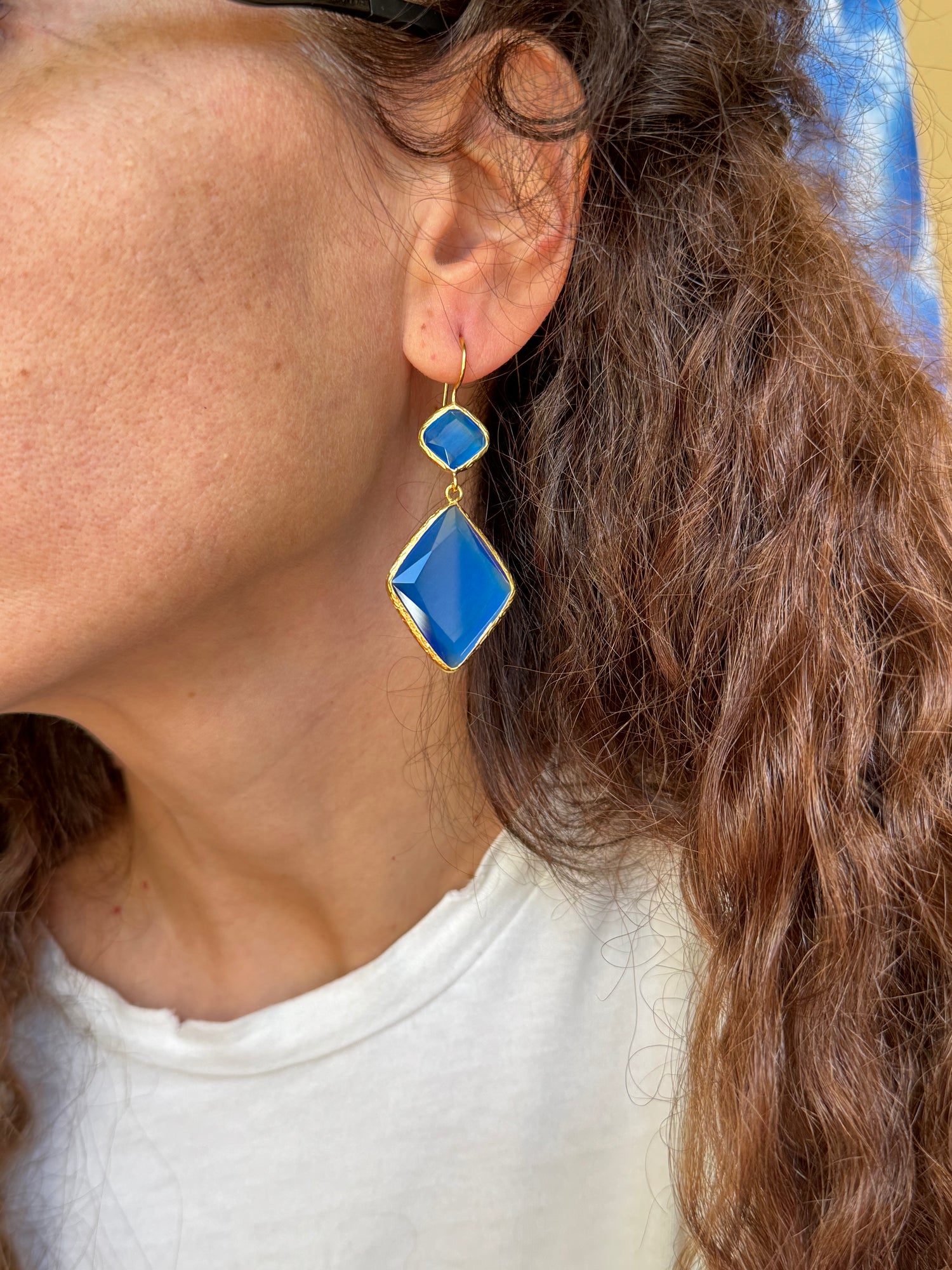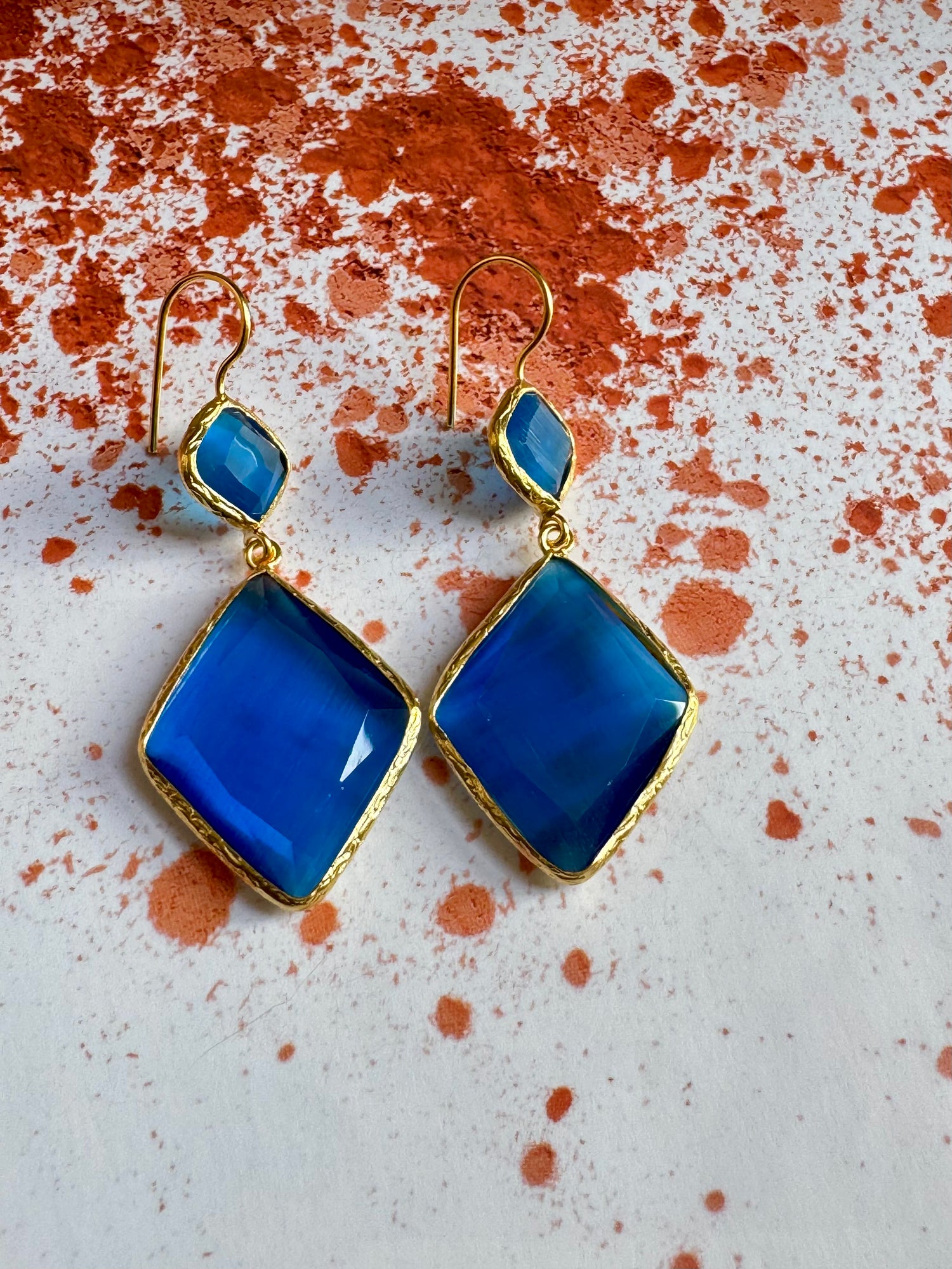Hypoallergene Messingohrringe mit Katzenaugenstein. Nickelfrei. Länge 7cm.