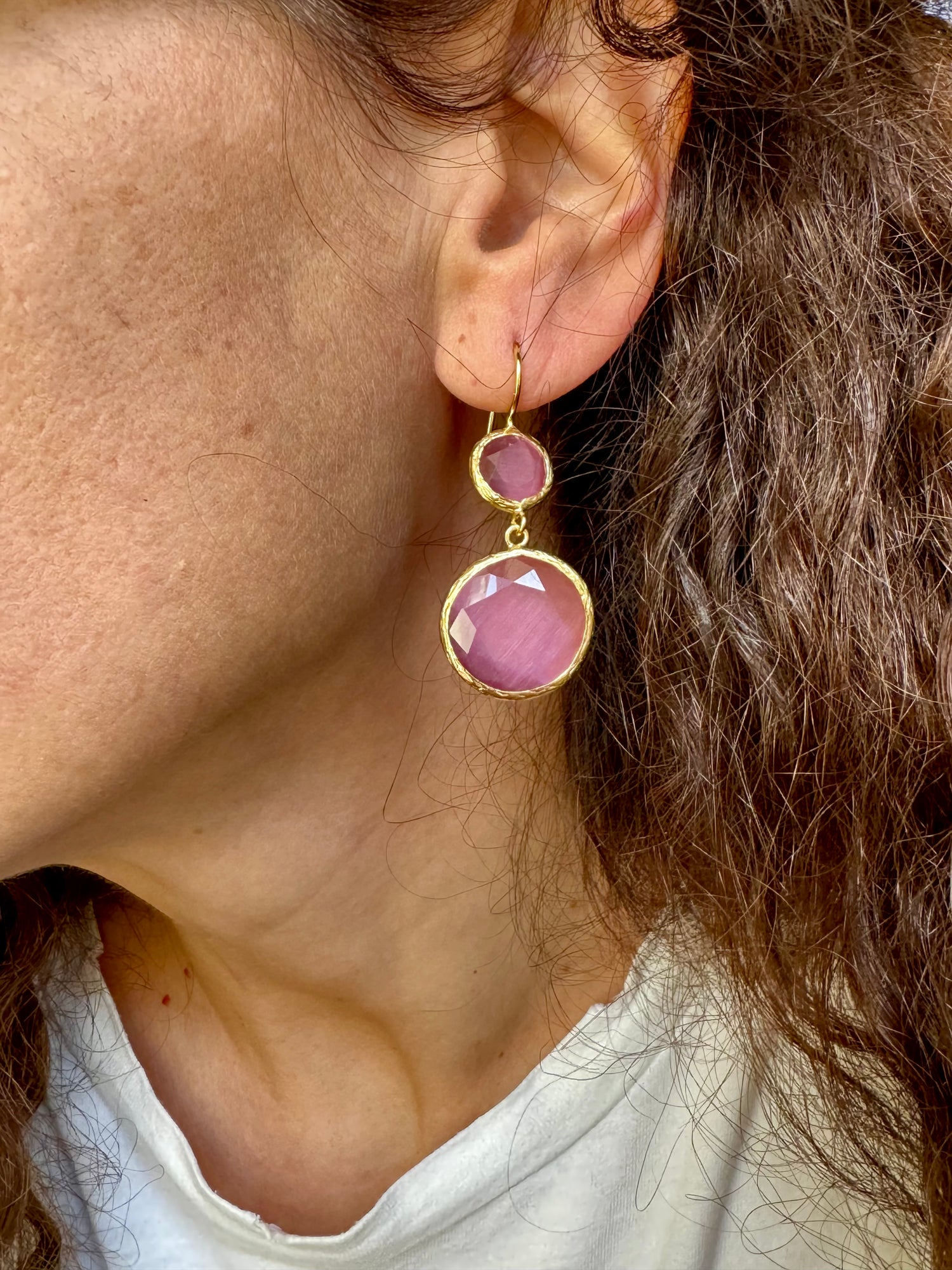 Hypoallergene Messingohrringe mit Katzenaugenstein. Nickelfrei. Länge 5cm.