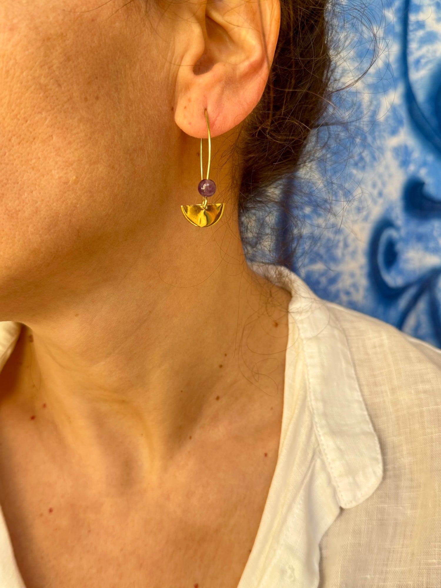 Orecchini boho dorato viola