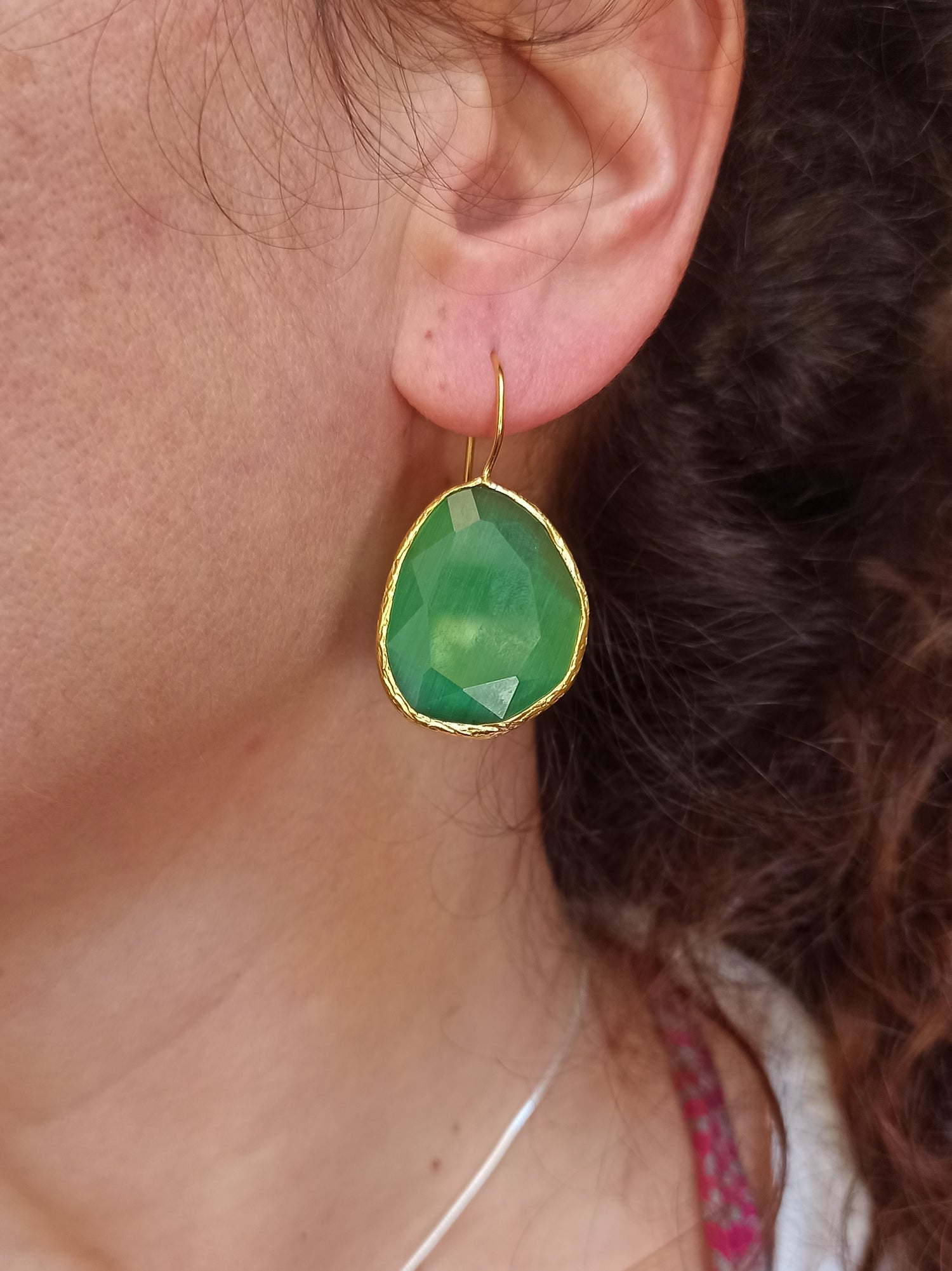 Hypoallergene Messingohrringe mit Katzenaugenstein. Nickelfrei. Länge 4cm.