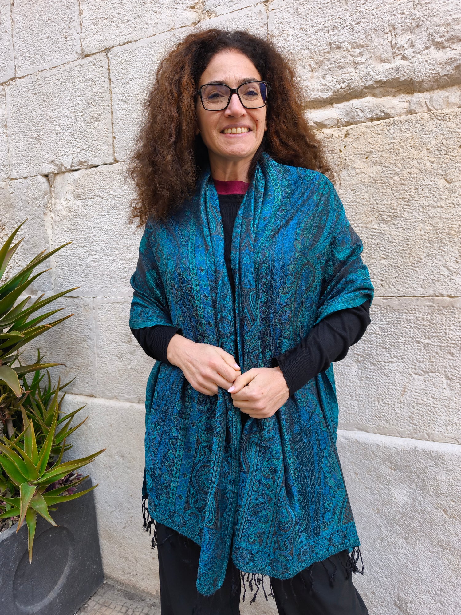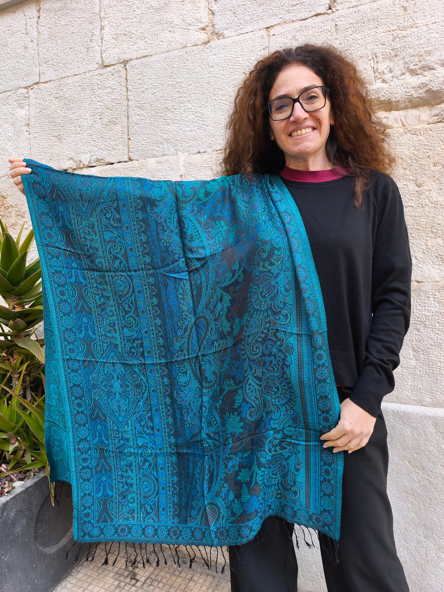 Con le sue dimensioni generose (195x75 cm), questa pashmina avvolge con eleganza e comfort, donando un tocco di stile in ogni occasione.