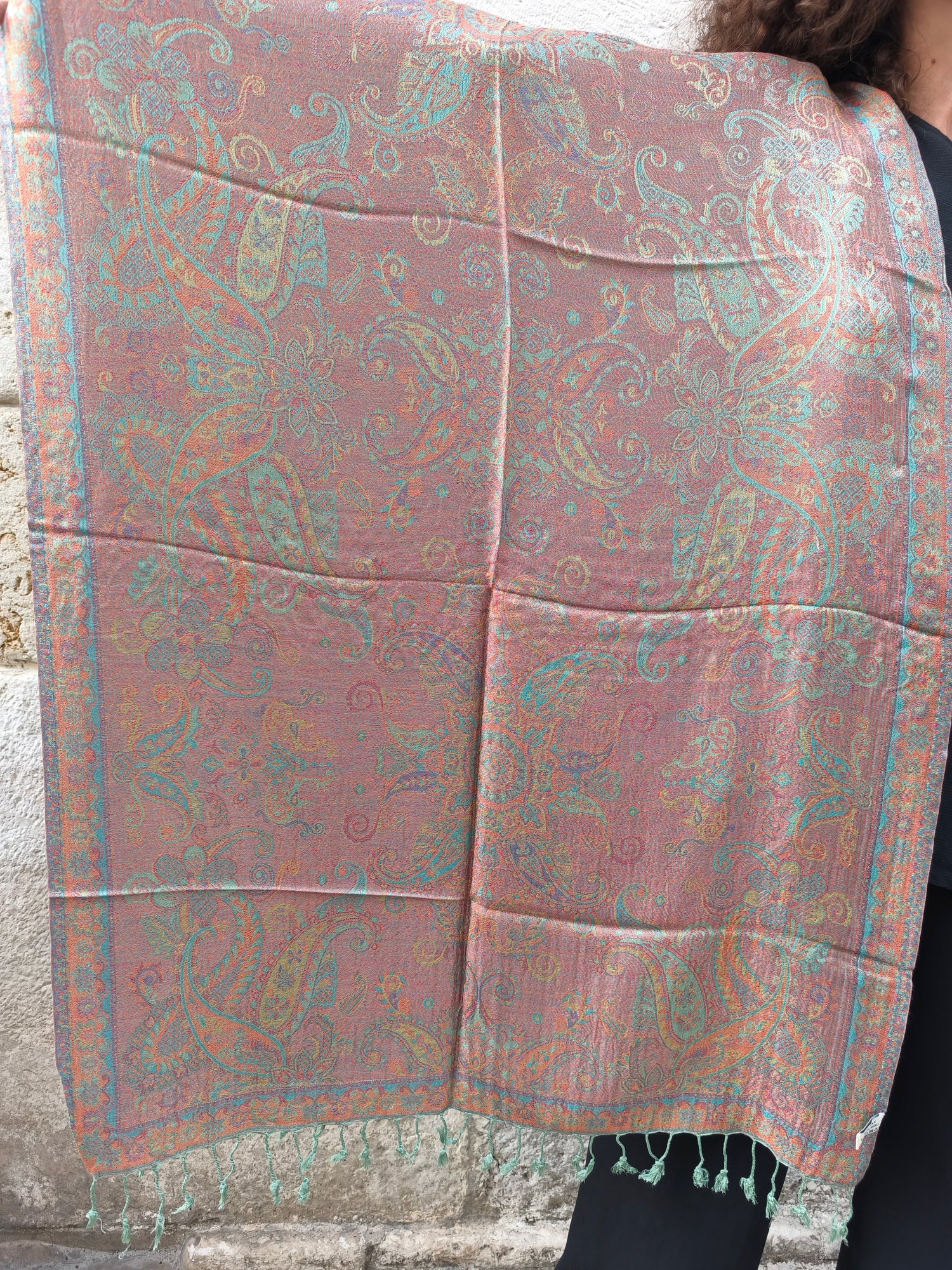 Mit seinen großzügigen Abmessungen (195 x 75 cm) hüllt Sie dieser Pashmina in Eleganz und Komfort und verleiht jedem Anlass einen Hauch von Stil.