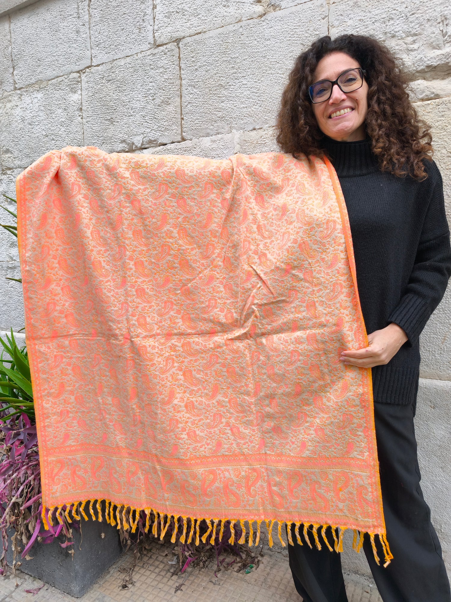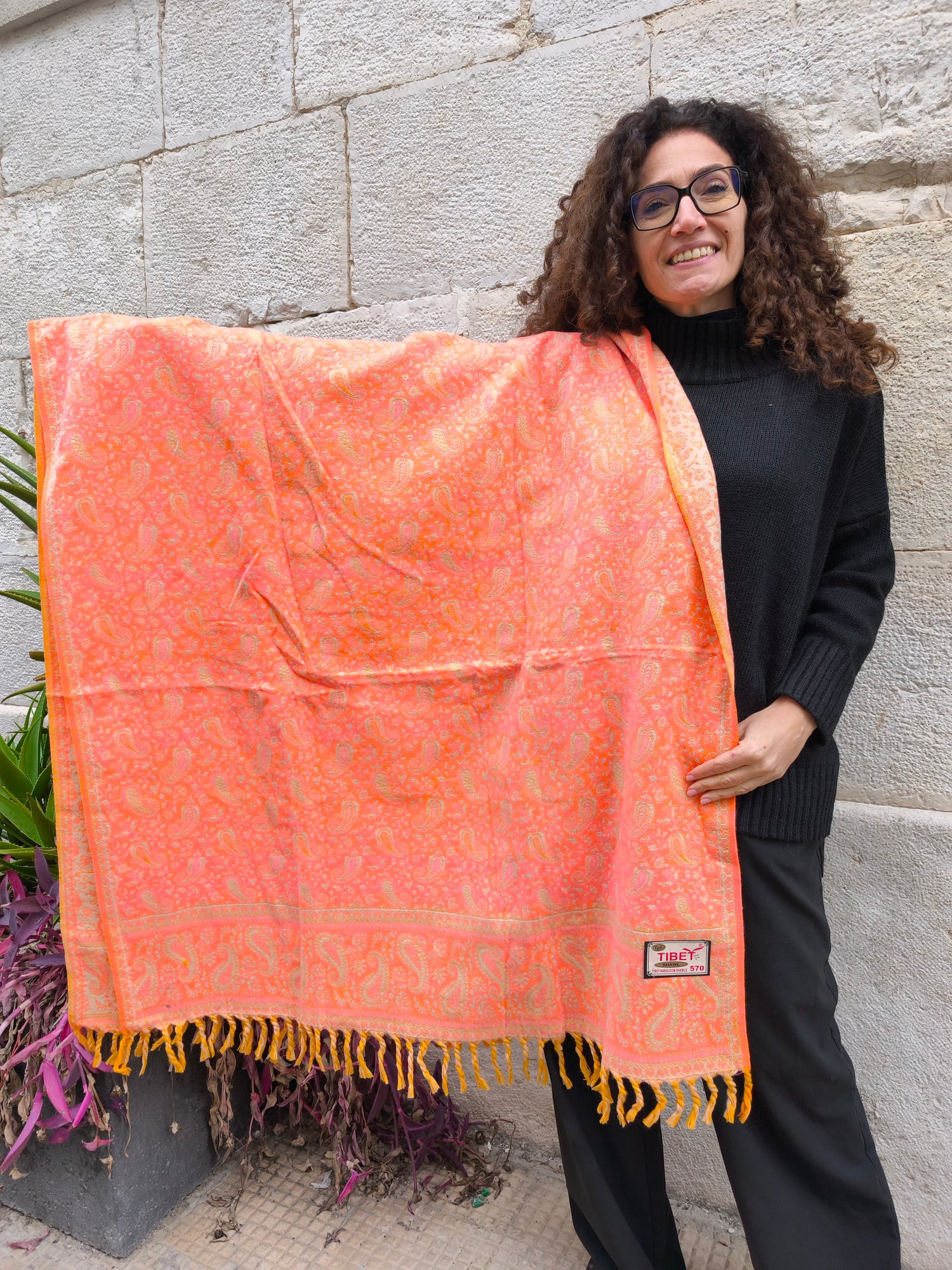 Scialle sciarpa stola Pashmina coperta lana di Yak calda Tibet 41B Difettata