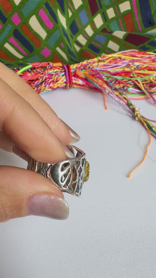 925 silver amber ring size 13/14 adjustable 46A