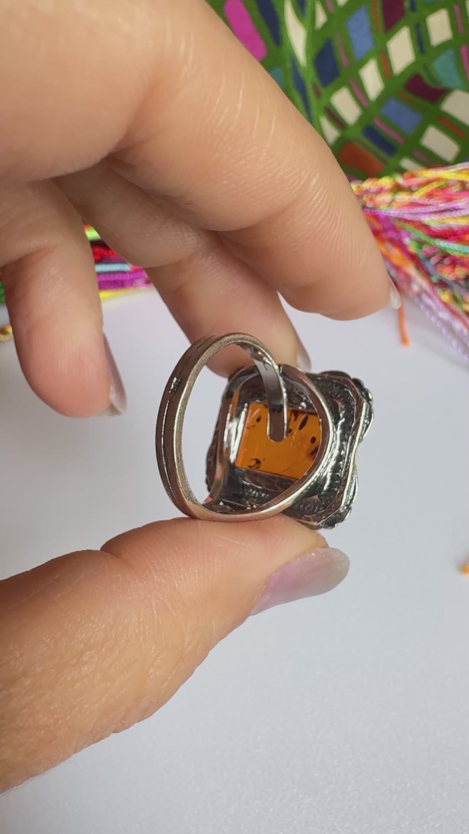 925 silver amber ring size 15 adjustable 48A